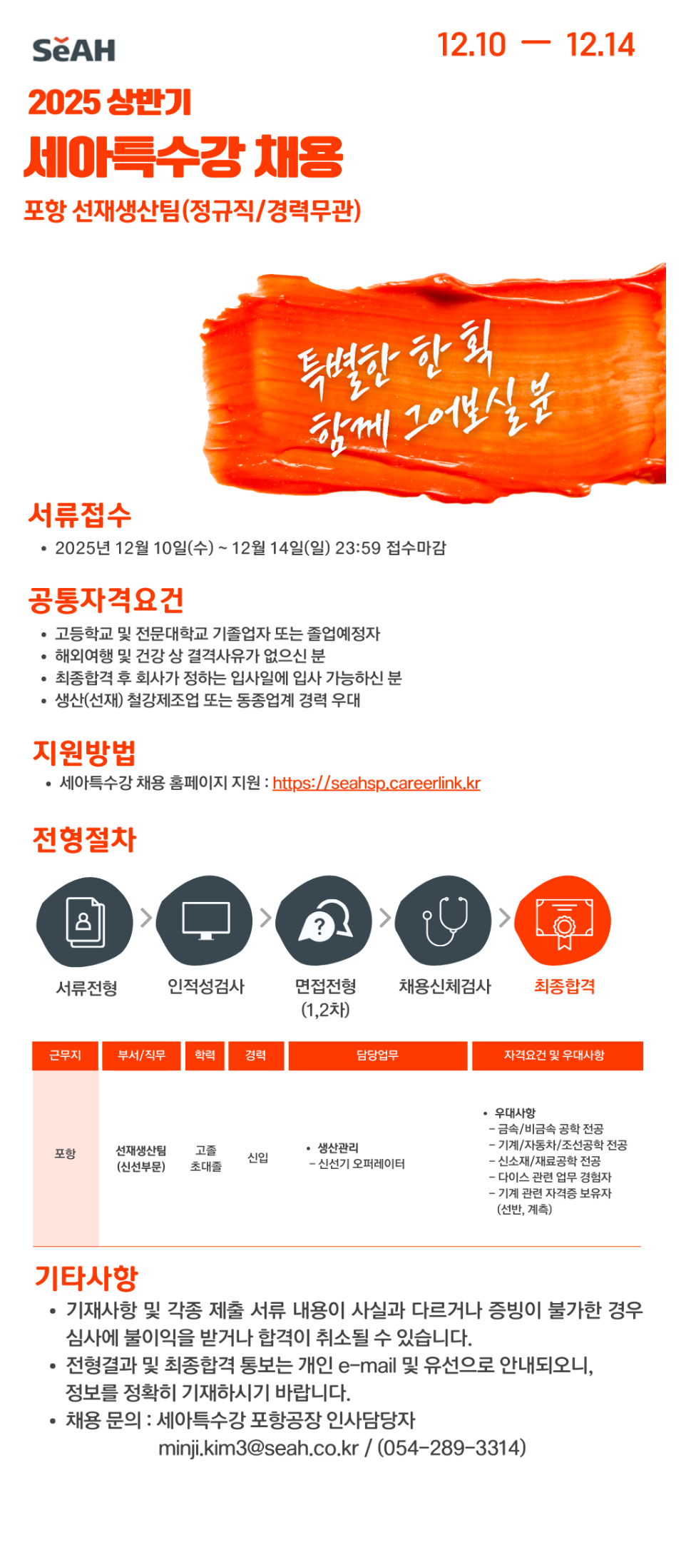 2025³â ¼¼¾ÆÆ¯¼ö° Æ÷Ç× ¼±Àç»ý»êÆÀ(Á¤±ÔÁ÷) ä¿ë [±â´ÉÁ÷]