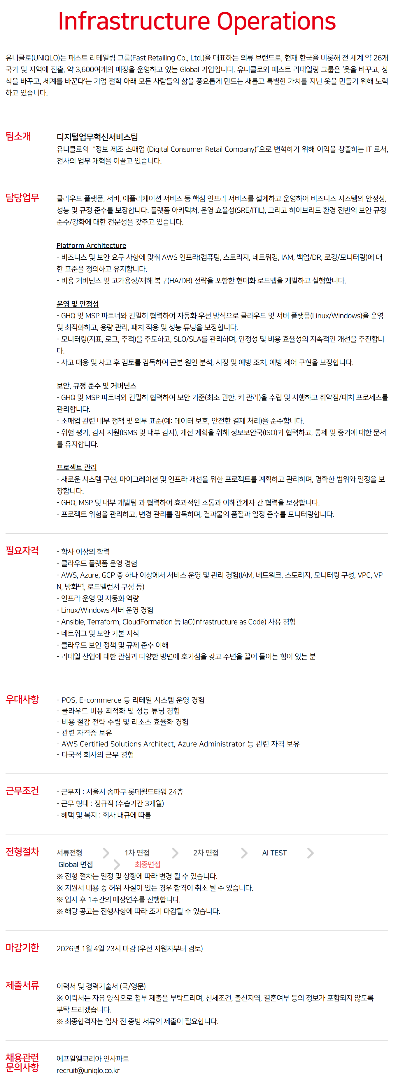Ŭ¶ó¿ìµå Ç÷§Æû, ¼¹ö, ¾ÖÇø®ÄÉÀÌ¼Ç ¼ºñ½º µî ÇÙ½É ÀÎÇÁ¶ó ¼ºñ½º¸¦ ¼³°èÇÏ°í ¿î¿µÇÏ¿© ºñÁî´Ï½º ½Ã½ºÅÛÀÇ ¾ÈÁ¤¼º, ¼º´É ¹× ±ÔÁ¤ Áؼö¸¦ º¸ÀåÇÕ´Ï´Ù. Ç÷§Æû ¾ÆÅ°ÅØÃ³, ¿î¿µ È¿À²¼º(SRE/ITIL), ±×¸®°í ÇÏÀ̺긮µå ȯ°æ Àü¹ÝÀÇ º¸¾È ±ÔÁ¤ Áؼö/°È¿¡ ´ëÇÑ Àü¹®¼ºÀ» °®Ãß°í ÀÖ½À´Ï´Ù.