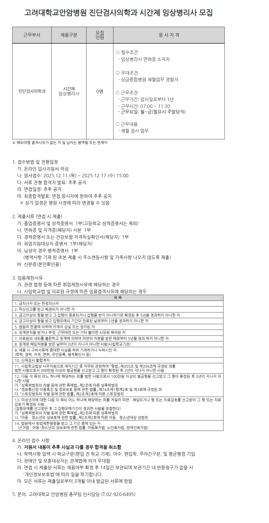[¾È¾Ïº´¿ø 25-230]Áø´Ü°Ë»çÀÇÇаú ½Ã°£Á¦ ÀÓ»óº´¸®»ç ¸ðÁý