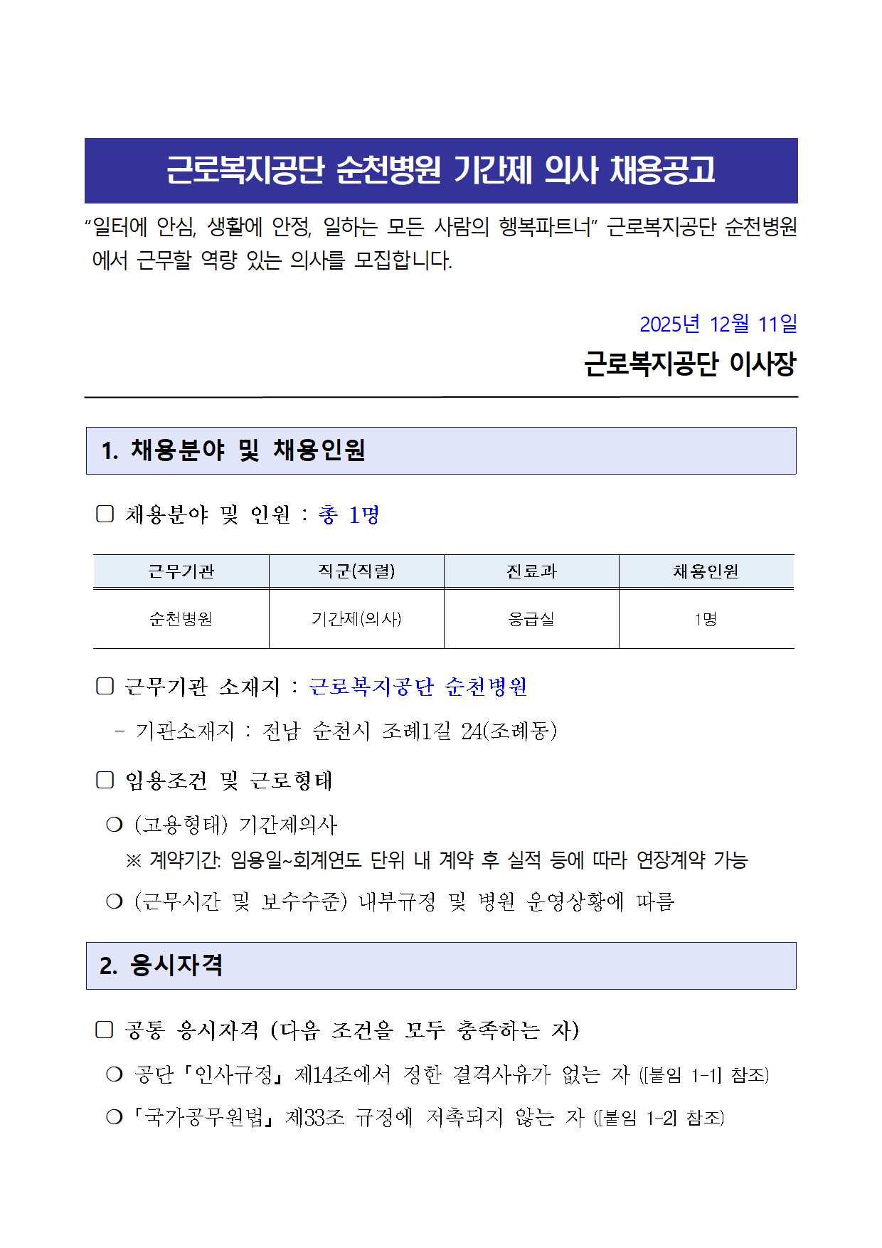 [¼øÃµº´¿ø] ±â°£Á¦ ÀÇ»ç(ÀÀ±Þ½Ç) ä¿ë °ø°í
