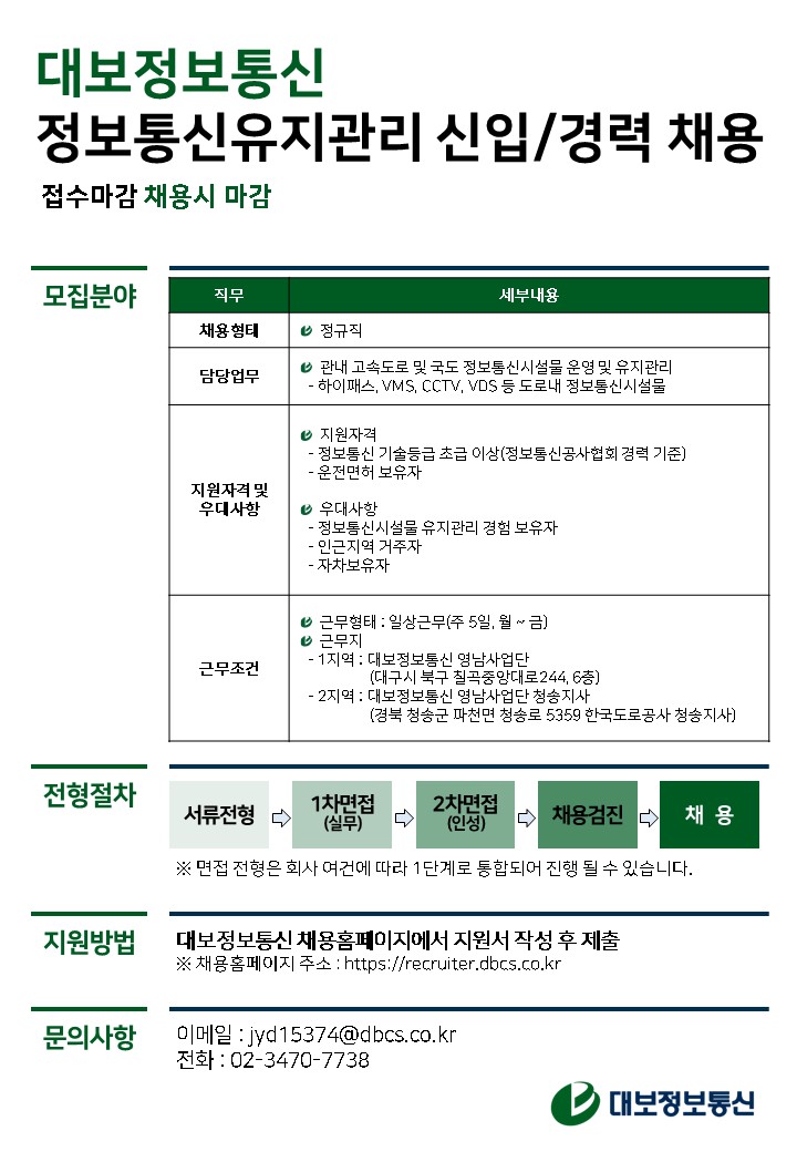 Á¤º¸Åë½Å½Ã¼³¹° À¯Áö°ü¸® Á÷¿ø ä¿ë(½ÅÀÔ ¶Ç´Â °æ·Â / ´ë±¸, °æºÏ û¼Û)