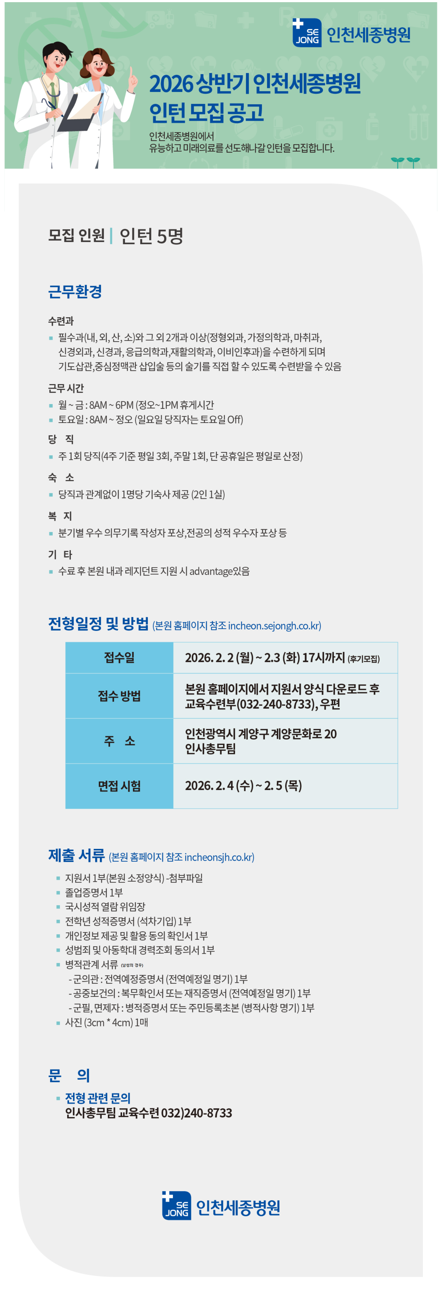 [ÀÎõ¼¼Á¾º´¿ø] 2026³âµµ »ó¹Ý±â Àü°øÀÇ(ÀÎÅÏ) ä¿ë