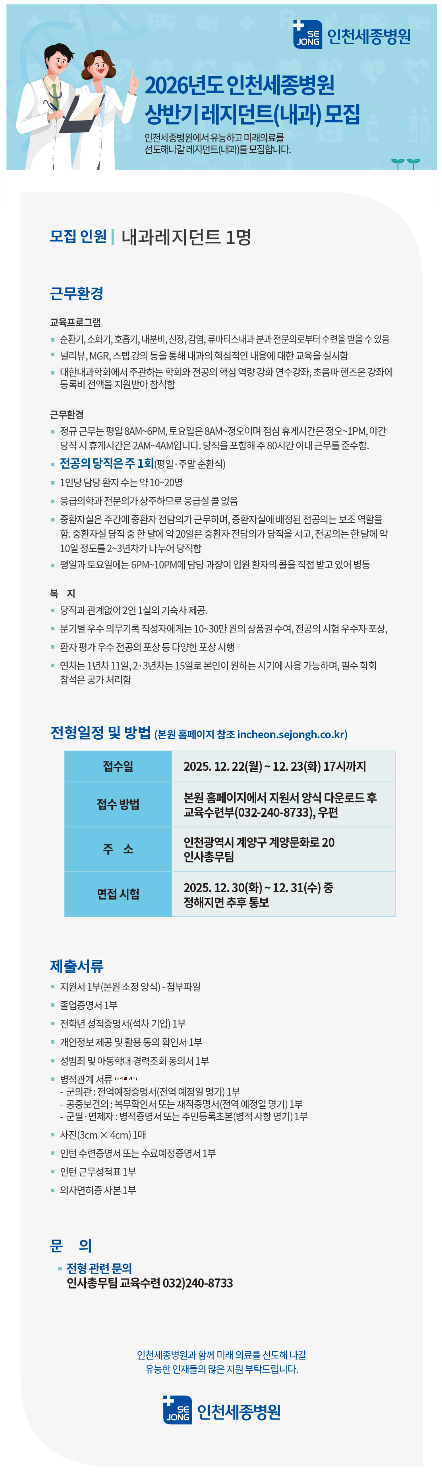 [ÀÎõ¼¼Á¾º´¿ø] 2026³âµµ »ó¹Ý±â Àü°øÀÇ(·¹Áö´øÆ®) ä¿ë