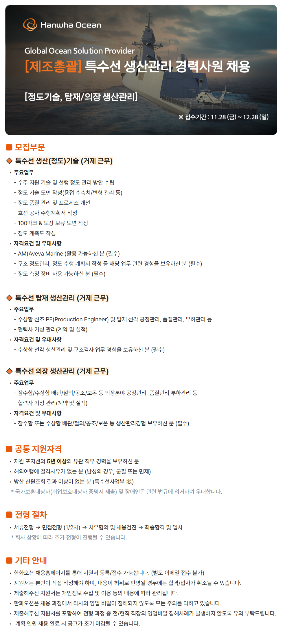 - Àá¼öÇÔ ¶Ç´Â ¼ö»óÇÔ ¹è°ü/öÀÇ/°øÁ¶/º¸¿Â µî »ý»ê°ü¸®°æÇè º¸À¯ÇϽŠºÐ (Çʼö)