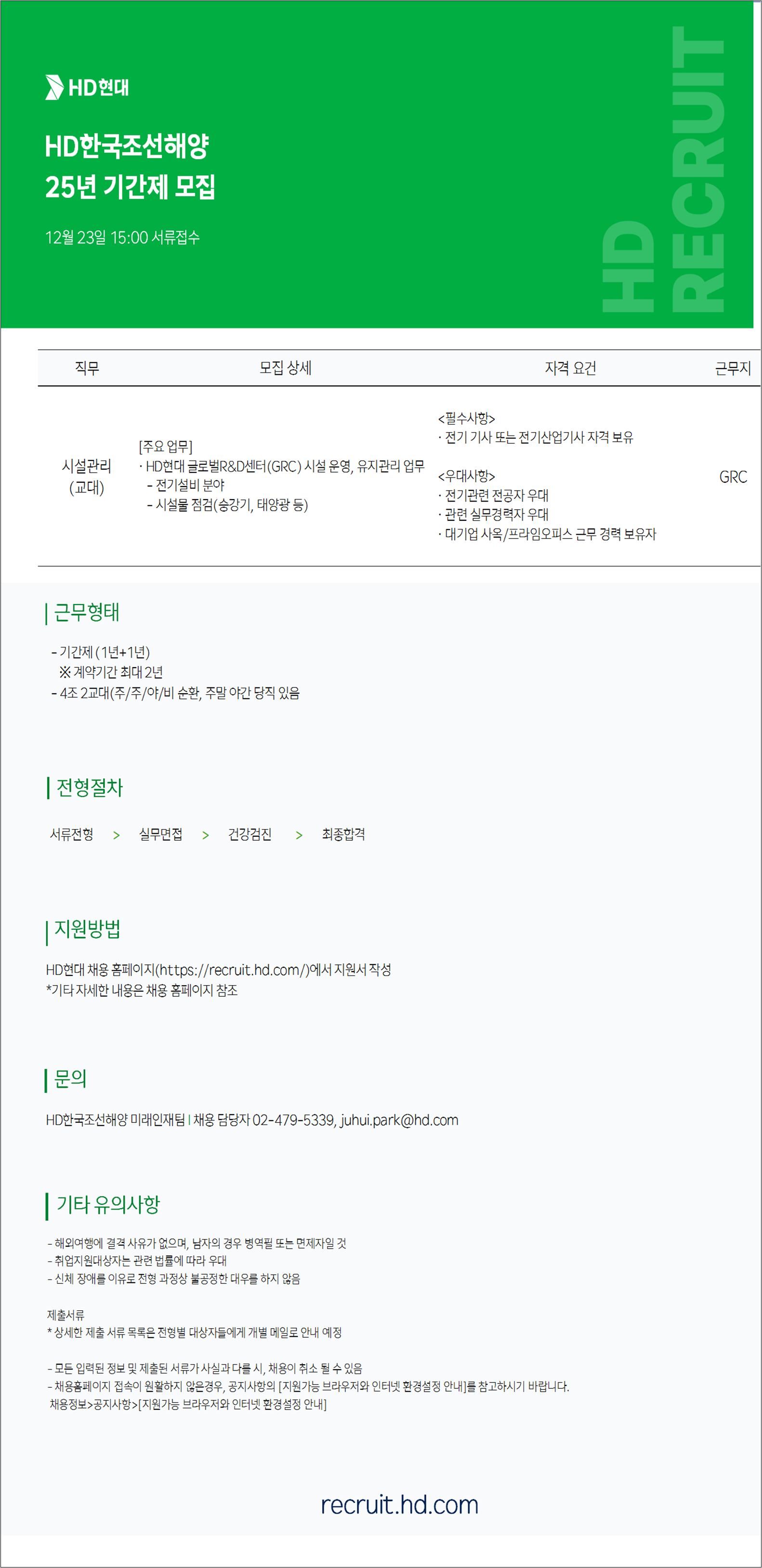 [HDÇѱ¹Á¶¼±Çؾç] ½Ã¼³°ü¸® ±â°£Á¦ ¸ðÁý