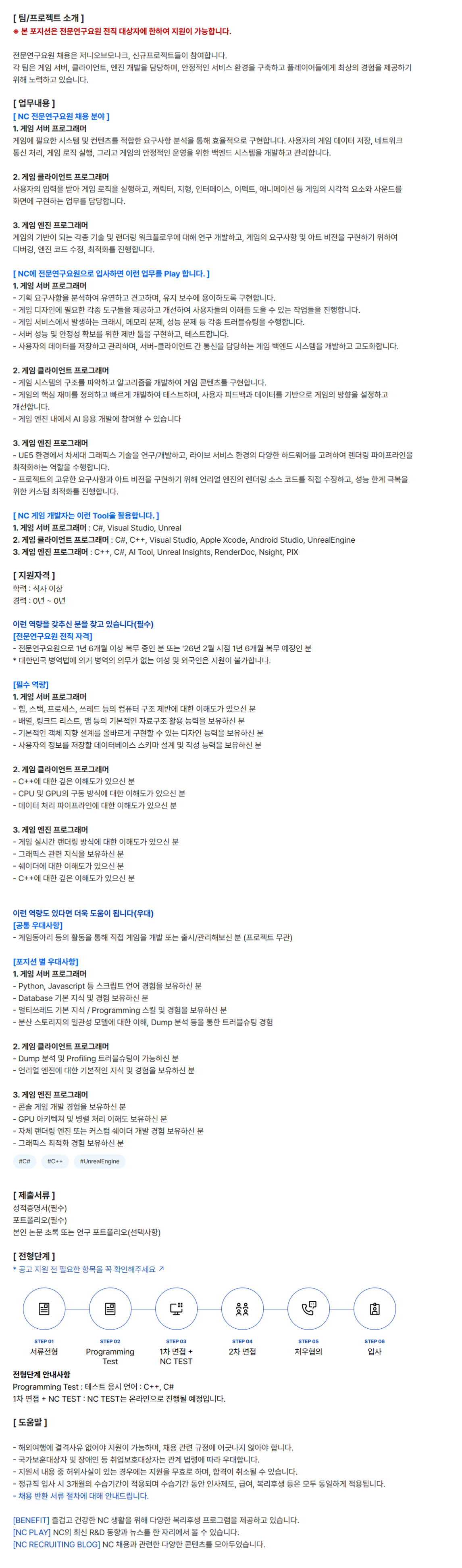 [NC Àü¹®¿¬±¸¿ä¿ø] Programming-°ÔÀÓ °³¹ß ¸ðÁý (ÀüÁ÷)