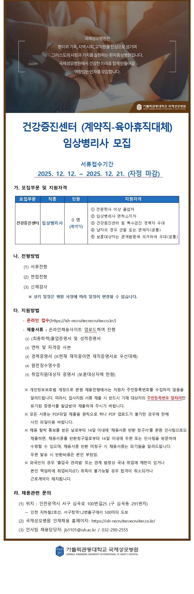 °Ç°ÁõÁø¼¾ÅÍ (°è¾àÁ÷-À°¾ÆÈÞÁ÷´ëü) ÀÓ»óº´¸®»ç ¸ðÁý