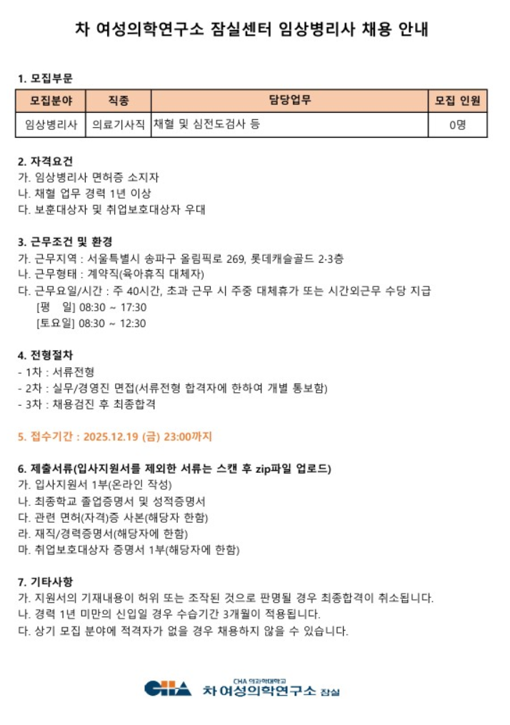 [Â÷¿©¼ºÀÇÇבּ¸¼Ò Àá½Ç¼¾ÅÍ] [Â÷ ¿©¼ºÀÇÇבּ¸¼Ò Àá½Ç¼¾ÅÍ] ÀÓ»óº´¸®»ç ä¿ë ¾È³»(À°¾ÆÈÞÁ÷ ´ëüÀÚ)