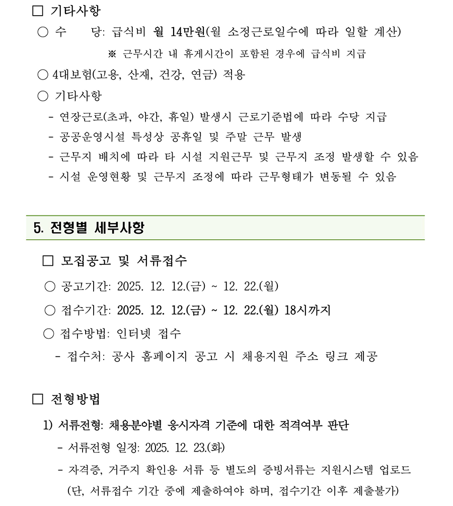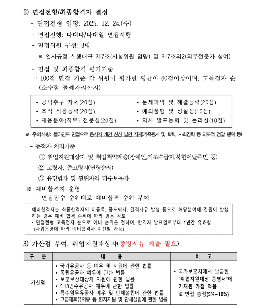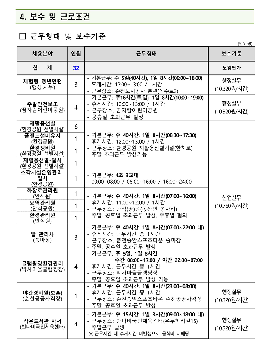 Ãáõµµ½Ã°ø»ç 2026³â Á¦1ȸ ±â°£Á¦±Ù·ÎÀÚ Ã¤¿ë°ø°í Ãáõµµ½Ã°ø»ç¿¡¼­ ±Ù¹«ÇÒ ±â°£Á¦ ±Ù·ÎÀÚ °ø°³Ã¤¿ë °èȹÀ» ¾Æ·¡¿Í °°ÀÌ °ø°íÇÕ´Ï´Ù. 2025³â 12¿ù 12ÀÏ Ãáõµµ½Ã°ø»ç »çÀå 1. ä¿ëºÐ¾ß ¡¤ Àοø, ÁÖ¿ä¾÷¹« ±¸ ºÐ ä¿ëºÐ¾ß ´ã´ç¾÷¹« ÀÎ ¿ø ä¿ë±â°£ ÇÕ °è 32 üÇèÇü û³âÀÎÅÏ - ÇàÁ¤¾÷¹« Áö¿ø(ȸ°è, ±âȹ¡¤È«º¸, »ç¹«) û³â 3 (Ãáõ½Ãûº°°ü) ¹æ¹®°í°´ ¾È³», ¿ìÆí¹° Á¤¸® µî ÀçȰ¿ë¼±º° - ÄÁº£ÀÌ¾î º§Æ® ÀçȰ¿ë¼±º°ÀÛ¾÷ ¹× 6 (ȯ°æ°ø¿ø ¼±º°½Ã¼³) ½ºÆ¼·ÎÆû ¿ëÀ¶ÀÛ¾÷ µî ±Ù¹«½ÃÀÛÀÏ Ç÷£Æ®¼³ºñÀ¯Áö - ¼Ò°¢ Ç÷£Æ® ¼³ºñ ¿î¿ë º¸Á¶, ¼Ò°¢½Ã¼³ ~12.31. ½Ã´Ï¾î 1 (ȯ°æ°ø¿ø) Â÷·®¡¤±â°è ¼³ºñ À¯Áö°ü¸® ¹× º¸¼ö µî ȯ°æÁ¤ºñ¿ø - ȯ°æ»ç¾÷ºÎ È­Àå½Ç, °ø¿ë°ø°£, »ç¹«½Ç µî 1 (ȯ°æ°ø¿ø) ½Ç³»¡¤¿Ü ȯ°æÁ¤ºñ ÀçȰ¿ë¼±º°-ÀϽà - ÄÁº£ÀÌ¾î º§Æ® ÀçȰ¿ë¼±º°ÀÛ¾÷ ¹× ±Ù¹«½ÃÀÛÀÏ 1 (ȯ°æ°ø¿ø ¼±º°½Ã¼³) ½ºÆ¼·ÎÆû ¿ëÀ¶ÀÛ¾÷ µî ~3.31. ¼Ò°¢½Ã¼³¿î¿µ°ü¸® ¼Ò°¢·Î¿îÀü, õÁ¤Å©·¹ÀοîÀü, ½Ã¼³¹°Á¡°Ë ±Ù¹«½ÃÀÛÀÏ ÀÏ¹Ý -ÀϽà 1 ¹× À¯Áöº¸¼ö µî ~9.25. (ȯ°æ°ø¿ø) ÁÖ¸»¾ÈÀüº¸Á¶ - ¾î¸°ÀÌ ¾ÈÀü»ç°í ¿¹¹æ°ü¸®, 4 (²ÞÀÚ¶÷¾î¸°À̰ø¿ø) ½Ã¼³ÀÌ¿ë¾È³», ȯ°æÁ¤¸® µî È­Àå·Î°ü¸®¿ø - È­Àå·Î È­Àå, ¼ö¡¤ºÐ°ñ ¹× À¯Áö°ü¸® µî 1 (¾È½Ä¿ø) ¹¦¿ª°ü¸®¿ø - ¾È½Ä°ø¿ø ¾ÈÄ¡ ¹× ¹¦¿ª Àܵð°ü¸®, 1 (¾È½Ä°ø¿ø) ºÀ¾È´ç ¾È³» µî ȯ°æ°ü¸®¿ø ¡¤ ½Ã¼³ ³»¡¤¿ÜºÎ ȯ°æÁ¤ºñ, ¼Ò¸ðǰ±³Ã¼, ½Ã´Ï¾î 1 (¾È½Ä¿ø) ȯ°æ¹ÌÈ­ ¾÷¹« ¼öÇà µî ¸» °ü¸®»ç - ½Â¸¶Àå ³» ¸¶»ç°ü¸®, ¸» ¸ÔÀÌÁÖ±â, ±Ù¹«½ÃÀÛÀÏ 3 (½Â¸¶Àå) Åé¹äÁ¤¸®, ½Â¸¶Àå ÁÖº¯ ȯ°æÁ¤ºñ µî ~6.30. ±Û·¥ÇÎÀåȯ°æ°ü¸® - ±Û·¥Çε¿ ħ±¸¡¤Áý±â·ù Á¤¸® ¹× ¾ß°£¼øÂû 4 (¹Ú»ç¸¶À»±Û·¥ÇÎÀå) - °ø°ø»ç°ÝÀå ¾ß°£°æºñ, ½Ã¼³¹° º¸È£ ¹× ¾ß°£°æºñ¿ø º¸ÈÆ ¼øÂû, ¹æ¹üº¸¾È, È­À翹¹æ, ÃâÀÔÀÚ 1 (Ãáõ°ø°ø»ç°ÝÀå) º¸¾ÈÁ¶Ä¡, »ç°Ç»ç°í Ãʱâ´ëÀÀ µî ÀÛÀºµµ¼­°ü »ç¼­ - ÀÛÀºµµ¼­°ü µµ¼­Á¤¸®, Ã¥ ´ëÃâ°ü¸® ¹× Àå¾ÖÀÎ 4 (¹Ý´Ùºñ±¹¹ÎüÀ°¼¾ÅÍ) °í°´ÀÀ´ë, ¼­·ùÁ¤¸®, »ç¹«º¸Á¶ µî ¡Ø ±Ù¹«½ÃÀÛÀÏ: 1¿ù Áß 2. ¸ðÁýÀÏÁ¤ ÀÏ ÀÚ ³» ¿ë ºñ °í - ±â°£Á¦±Ù·ÎÀÚ ¸ðÁý °ø°í °ø»ç ȨÆäÀÌÁö, Ŭ¸°¾ÆÀÌ µî 25. 12. 12.(±Ý) ~ 12. 22.(¿ù) - ÀÀ½ÃÀÚ ¼­·ù Á¢¼ö(ÀÚ±â¼Ò°³¼­ µî) ÀÎÅÍ³Ý Á¢¼ö - 22(¿ù) 18½Ã±îÁö Á¢¼ö°¡´É - ¼­·ùÀüÇü Àû°Ý½É»ç °ø»ç ȨÆäÀÌÁö, Ŭ¸°¾ÆÀÌ µî 25. 12. 23.(È­) - ¼­·ùÀüÇü °á°ú ¹× ¸éÁ¢ÀüÇü ÀÏÁ¤ ¹ßÇ¥ °ø°í (¿ÀÈÄ 5½Ã ÀÌÈÄ) 25. 12. 24.(¼ö) - ¸éÁ¢ÀüÇüÀÏ ÃßÈÄ °³º°ÅëÁö 25. 12. 29.(¿ù) - ÇÕ°ÝÀÚ ¹ßÇ¥ / °³º°¹®ÀÚ ¹× À¯¼±¾È³» °ø»ç ȨÆäÀÌÁö, Ŭ¸°¾ÆÀÌ µî 3. ÀÀ½ÃÀÚ°Ý ¡à ÀÀ½Ã °øÅëÀÚ°Ý ¡Û ÀÀ½Ã ¿¬·É: ¸¸ 18¼¼ ÀÌ»óÀ¸·Î ±Ù·Î ´É·ÂÀÌ ÀÖ´Â ÀÚ ¡Û Ãáõµµ½Ã°ø»ç Àλç±ÔÁ¤ Á¦13Á¶ÀÇ °á°Ý»çÀ¯¿¡ ÇØ´çÇÏÁö ¾Ê´Â »ç¶÷ 1. (»è Á¦) 2. ÇǼº³âÈİßÀÎ ¶Ç´Â ÇÇÇÑÁ¤ÈİßÀÎ 3. ÆÄ»êÀڷμ­ º¹±ÇµÇÁö ¾Æ´ÏÇÑ ÀÚ 4. ±Ý°í ÀÌ»óÀÇ ½ÇÇüÀÇ ¼±°í¸¦ ¹Þ°í ±× ÁýÇàÀÌ Á¾·á(ÁýÇàÀÌ Á¾·áµÈ °ÍÀ¸·Î º¸´Â °æ¿ì¸¦ Æ÷ÇÔÇÑ´Ù)µÇ°Å³ª ÁýÇàÀÌ ¸éÁ¦µÈ ³¯ºÎÅÍ 2³âÀÌ °æ°úµÇÁö ¾Æ´ÏÇÑ ÀÚ 5. ¡¸Áö¹æ°ø±â¾÷¹ý¡¹ À» À§¹ÝÇÏ¿© ¹ú±ÝÇüÀ» ¹Þ°í 2³âÀÌ °æ°úµÇÁö ¾Æ´ÏÇÑ ÀÚ 6. ¹ý¿øÀÇ ÆÇ°á ¶Ç´Â ´Ù¸¥ ¹ý·ü¿¡ ÀÇÇÏ¿© ÀÚ°ÝÀÌ »ó½Ç ¶Ç´Â Á¤ÁöµÈ ÀÚ 7. ¡°è¿¡ ÀÇÇÏ¿© ÇØÀÓóºÐÀ» ¹ÞÀº ³¯·ÎºÎÅÍ 3³â, ÆÄ¸éóºÐÀ» ¹ÞÀº ³¯ºÎÅÍ 5³âÀÌ °æ°úµÇÁö ¾Æ´ÏÇÑ ÀÚ (¡¸Áö¹æ°ø±â¾÷¹ý¡¹ Á¦78Á¶ÀÇ2¿¡ ÀÇ°Å ÇØÀÓóºÐÀ» ¹ÞÀº ÀÚ¸¦ Æ÷ÇÔÇÑ´Ù.) 8. ¡¸ºÎÆÐ¹æÁö ¹× ±¹¹Î±ÇÀÍÀ§¿øÈ¸ÀÇ ¼³Ä¡¿Í ¿î¿µ¿¡ °üÇÑ ¹ý·ü¡¹ Á¦82Á¶ Á¦1Ç׿¡ µû¸¥ ºñÀ§¸éÁ÷ÀÚµîÀÌ ´ç¿¬ÅðÁ÷, ÆÄ¸é, ÇØÀÓµÈ °æ¿ì¿¡´Â ÅðÁ÷ÀÏ, ¹ú±Ý 300¸¸¿ø ÀÌ»óÀÇ ÇüÀÇ ¼±°í¸¦ ¹ÞÀº °æ¿ì¿¡´Â ±× ÁýÇàÀÌ Á¾·á(Á¾·áµÈ °ÍÀ¸·Î º¸´Â °æ¿ì¸¦ Æ÷ÇÔÇÑ´Ù) µÇ°Å³ª ÁýÇàÀ» ¹ÞÁö ¾Æ´ÏÇϱâ·Î È®Á¤µÈ ³¯ºÎÅÍ 5³âÀÌ °æ°úµÇÁö ¾Æ´ÏÇÑ »ç¶÷ 9. ¡¸¼ºÆø·Â¹üÁËÀÇ Ã³¹ú µî¿¡ °üÇÑ Æ¯·Ê¹ý¡¹ Á¦2Á¶¿¡ ±ÔÁ¤µÈ Á˸¦ ¹üÇÑ »ç¶÷À¸·Î¼­ 100¸¸¿ø ÀÌ»óÀÇ ¹ú±ÝÇüÀ» ¼±°í¹Þ°í ±× ÇüÀÌ È®Á¤µÈ ÈÄ 3³âÀÌ Áö³ªÁö ¾Æ´ÏÇÑ »ç¶÷ 10. ¹Ì¼º³âÀÚ¿¡ ´ëÇÑ ´ÙÀ½ °¢ ¸ñÀÇ ¾î´À Çϳª¿¡ ÇØ´çÇÏ´Â Á˸¦ ÀúÁú·¯ ÆÄ¸é * ÇØÀÓ µÇ°Å³ª Çü ¶Ç´Â Ä¡·á°¨È£¸¦ ¼±°í¹Þ¾Æ ±× Çü ¶Ç´Â Ä¡·á°¨È£°¡ È®Á¤µÈ »ç¶÷ (ÁýÇàÀ¯¿¹¸¦ ¼±°í¹ÞÀº ÈÄ ±× ÁýÇàÀ¯¿¹±â°£À̰æ°úÇÑ »ç¶÷À» Æ÷ÇÔÇÑ´Ù) °¡. ¡¸¼ºÆø·Â¹üÁËÀÇ Ã³¹ú µî¿¡ °üÇÑ Æ¯·Ê¹ý¡¹ Á¦2Á¶