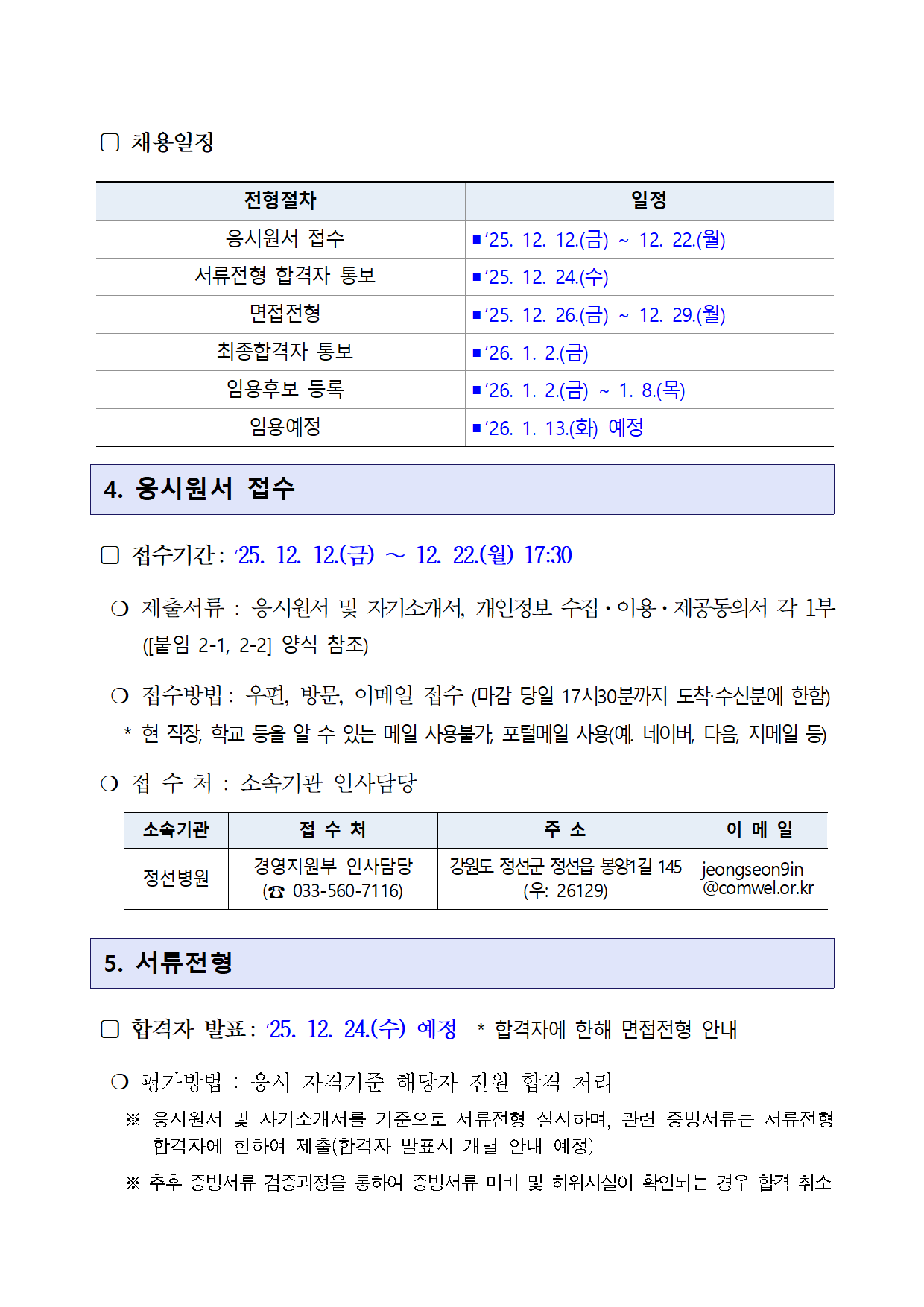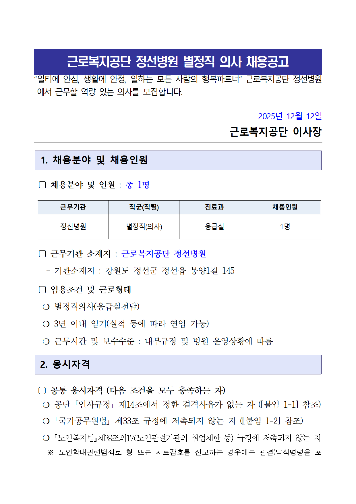 [Á¤¼±º´¿ø] º°Á¤Á÷(ÀÀ±Þ½Ç Àü´ã) ÀÇ»ç Á÷¿øÃ¤¿ë °ø°í(3Â÷)