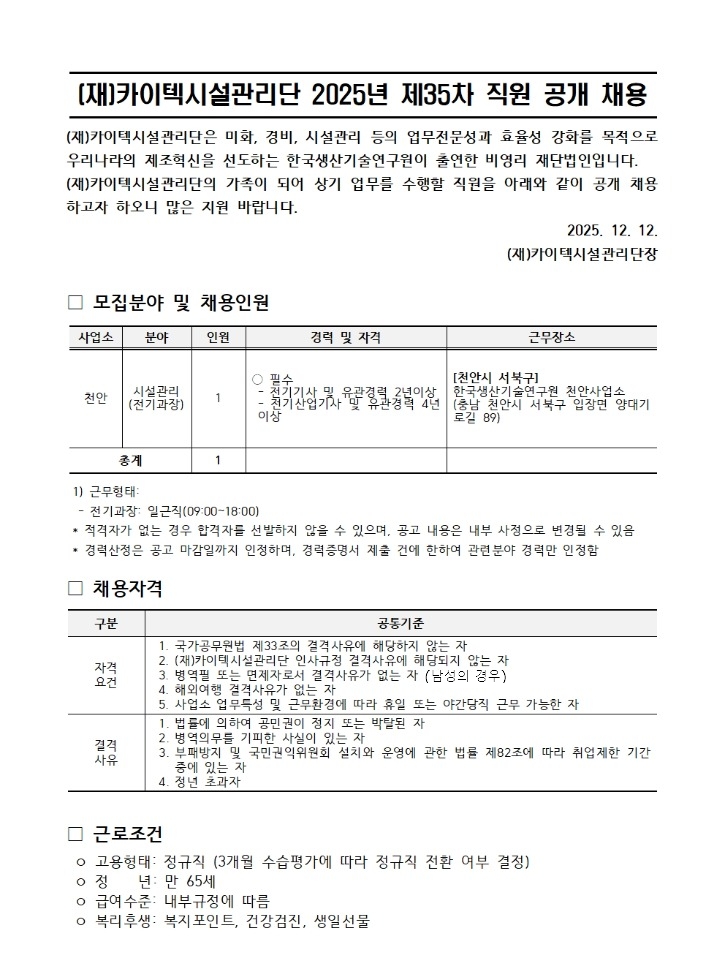 (Àç)Ä«ÀÌÅØ½Ã¼³°ü¸®´Ü 2025³â Á¦35Â÷ Á÷¿ø °ø°³Ã¤¿ë