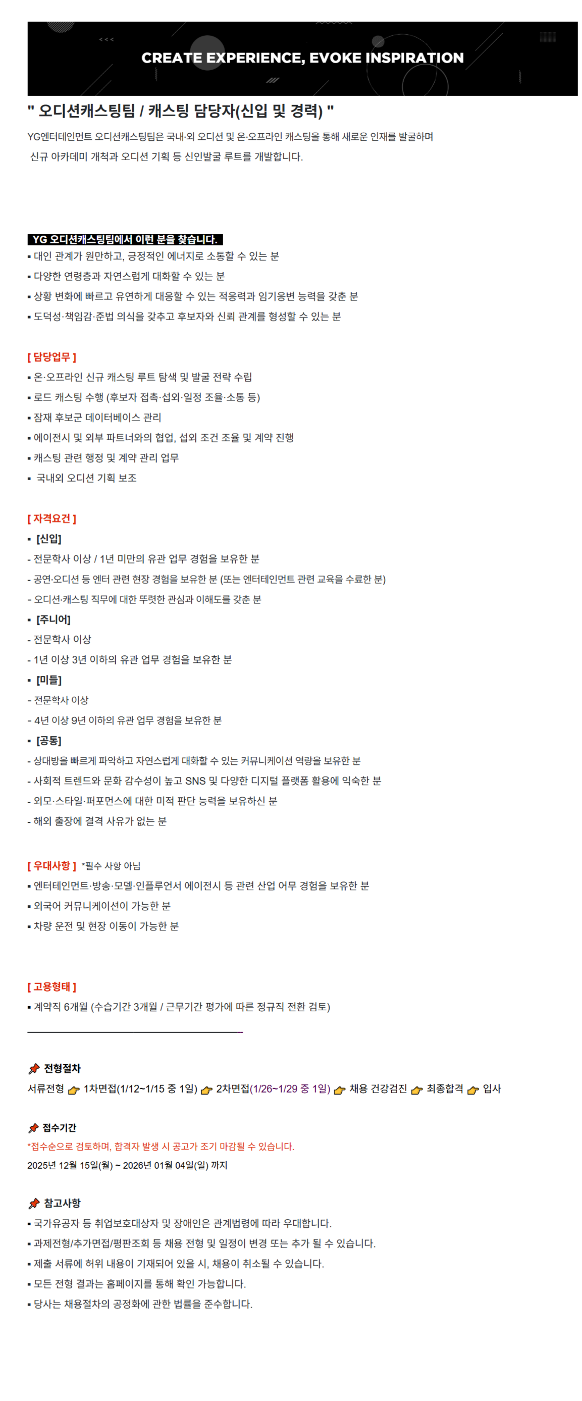 [12¿ù_¼ö½Ãä¿ë] ¿Àµð¼Çij½ºÆÃÆÀ / ij½ºÆÃ ´ã´çÀÚ (½ÅÀÔ ¹× °æ·Â)