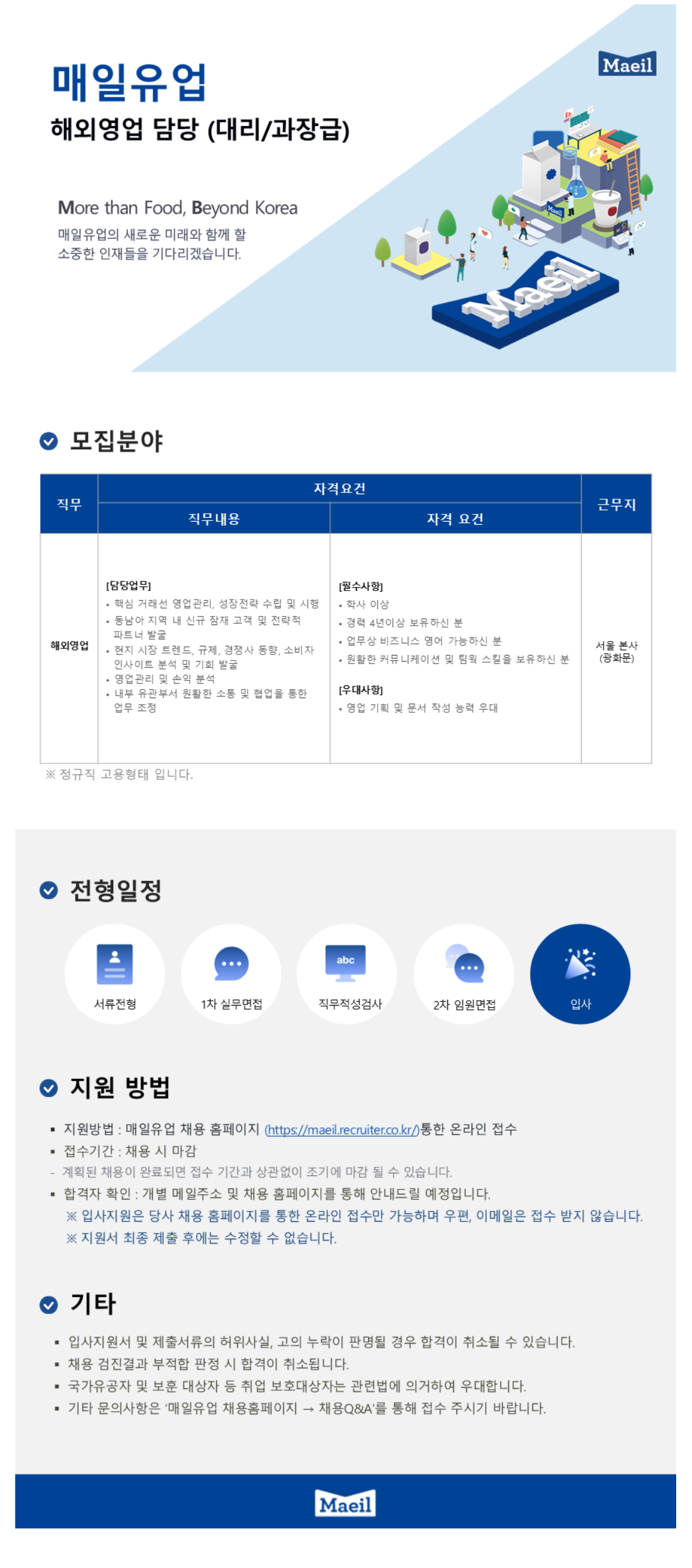 ¸ÅÀÏÀ¯¾÷ º»»ç ÇØ¿Ü¿µ¾÷ (´ë¸®/°úÀå±Þ)