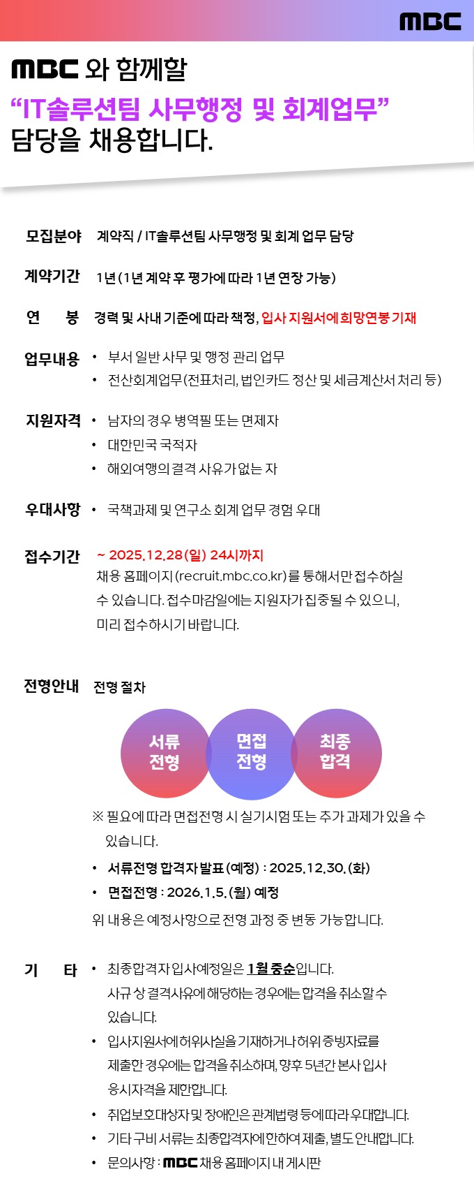 MBC IT¼Ö·ç¼ÇÆÀ »ç¹«ÇàÁ¤ ´ã´ç ¸ðÁý