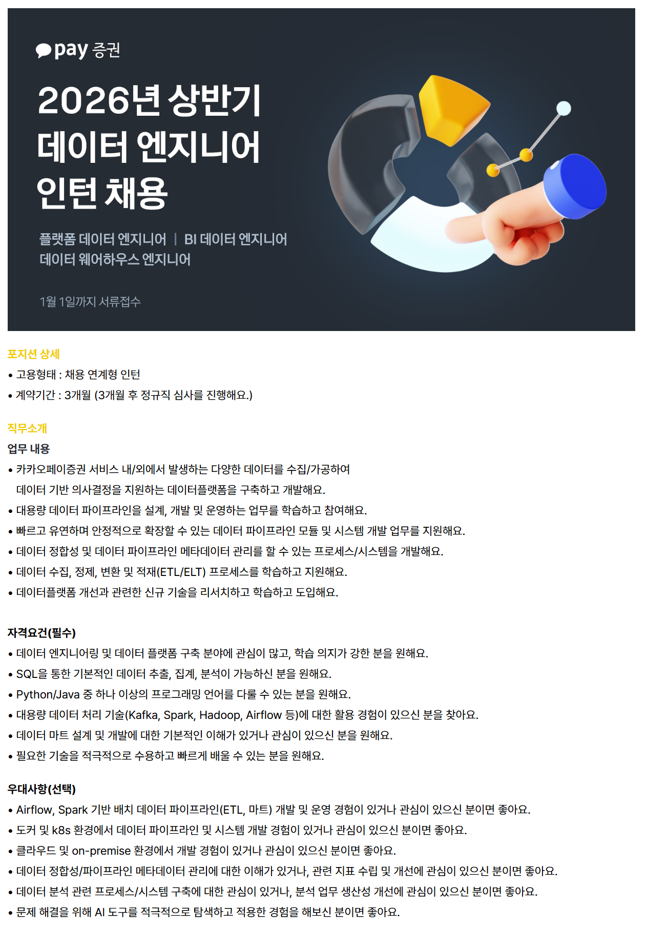 • ´ë¿ë·® µ¥ÀÌÅÍ Ã³¸® ±â¼ú(Kafka, Spark, Hadoop, Airflow µî)¿¡ ´ëÇÑ È°¿ë °æÇèÀÌ ÀÖÀ¸½Å ºÐÀ» ã¾Æ¿ä.