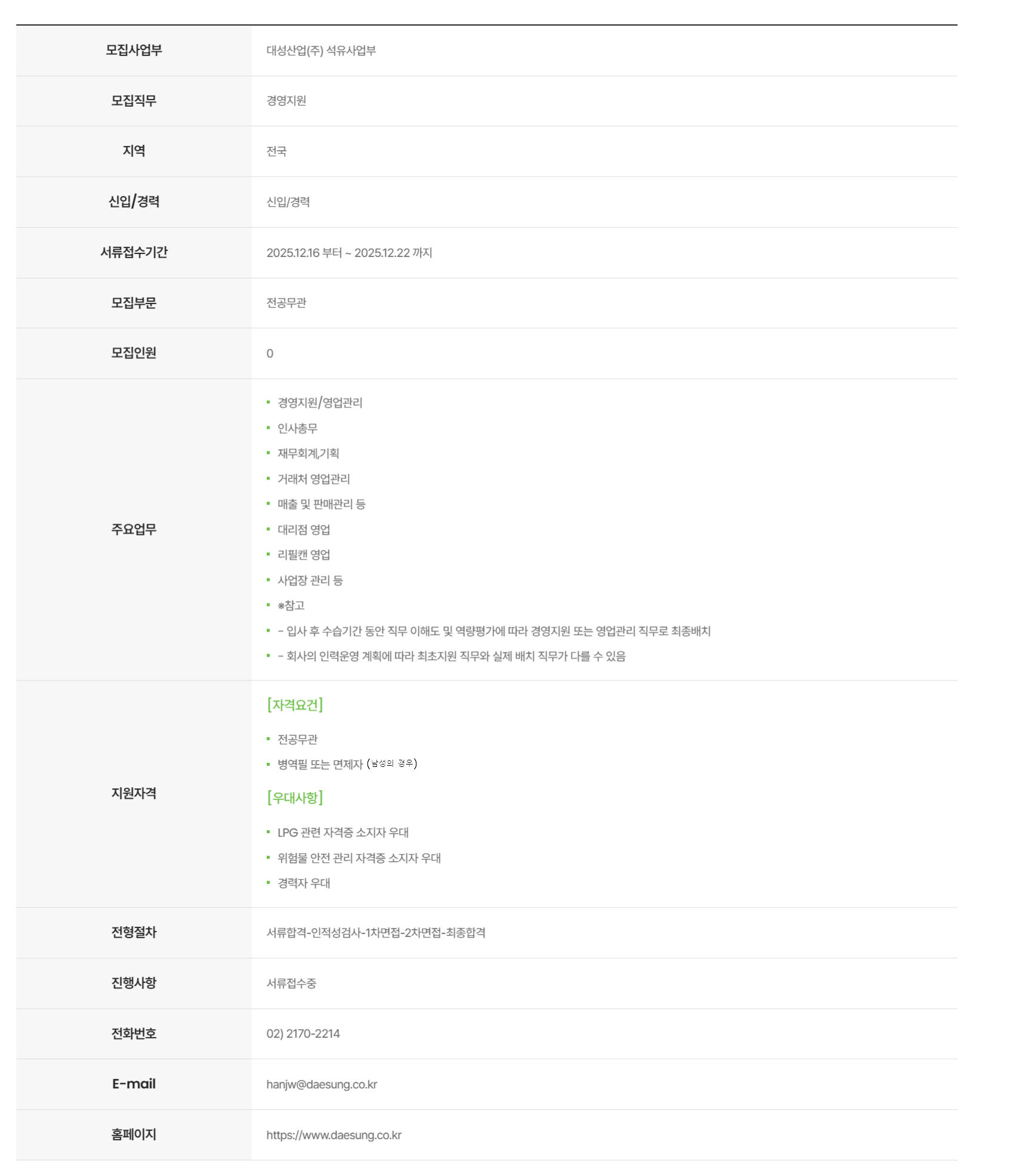 [´ë¼º»ê¾÷ ¼¿ï¼®À¯»ç¾÷ºÎ] °æ¿µÁö¿ø/¿µ¾÷°ü¸® ½ÅÀÔ»ç¿ø ¸ðÁý