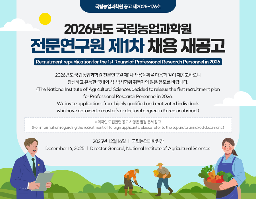 - ±¹¸³³ó¾÷°úÇпø °ø°í Á¦2025-165È£(2026³âµµ ±¹¸³³ó¾÷°úÇпø Á¦1Â÷ Àü¹®¿¬±¸¿ø ä¿ë °ø°í)·Î °ø°íÇÑ »çÇ׿¡ µû¶ó Áö¿ø½Åû¼ µîÀ» Á¦ÃâÇÑ ÀÀ½ÃÀÚ´Â Áö¿ø ¼·ù¿¡ ÀÌ»óÀÌ ¾ø´Â °æ¿ì¿¡ ÇÑÇØ ÀÀ½ÃÇÑ °ÍÀ¸·Î °£ÁÖ