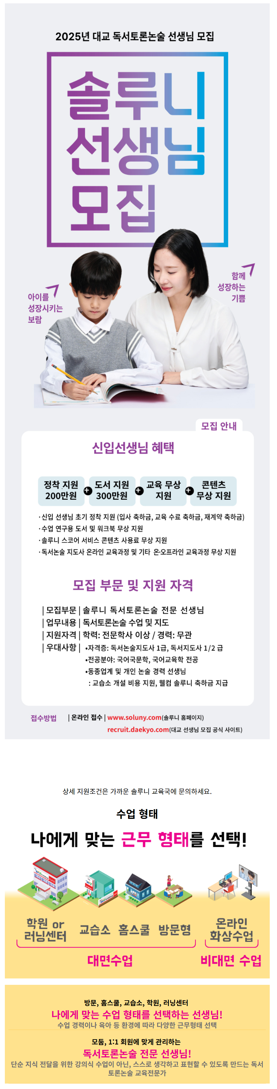 ¿¹ºñ ±³À° ¼ö·á ½Ã, ¼Ö·ç´Ï µ¶¼³í¼ú ÀÏ¹Ý ±³À°ÀÇ ÀÚ¿ø ÀÚ°ÝÀ» ºÎ¿©ÇØ ÁÖ´Â ¹«·á ±³À° °úÁ¤