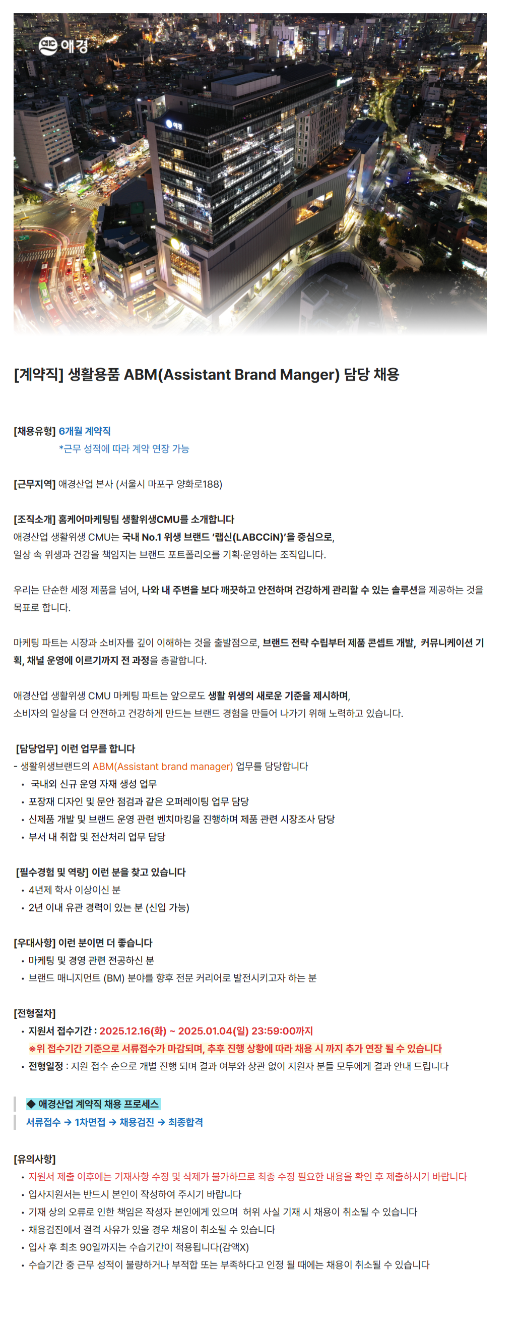 [°è¾àÁ÷] »ýȰ¿ëǰ ABM(Assistant Brand Manger) ´ã´ç ä¿ë