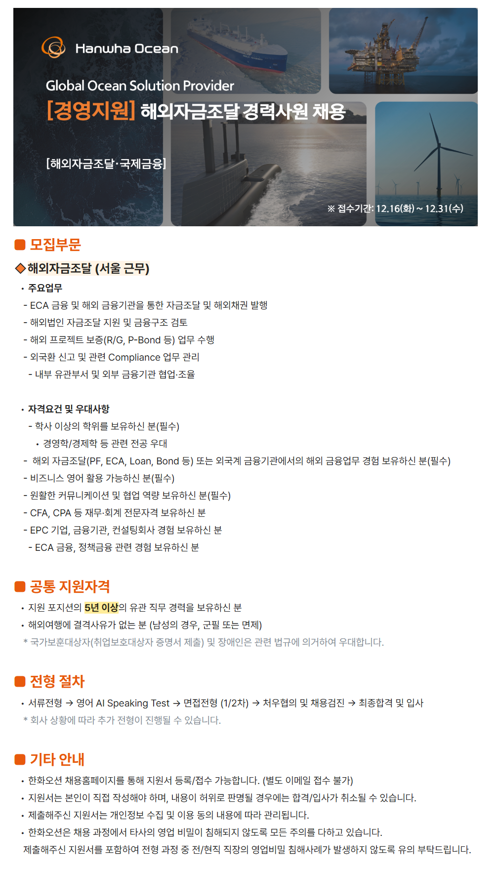 - ÇØ¿Ü ÀÚ±ÝÁ¶´Þ(PF, ECA, Loan, Bond µî) ¶Ç´Â ¿Ü±¹°è ±ÝÀ¶±â°ü¿¡¼ÀÇ ÇØ¿Ü ±ÝÀ¶¾÷¹« °æÇè º¸À¯ÇϽŠºÐ(Çʼö)