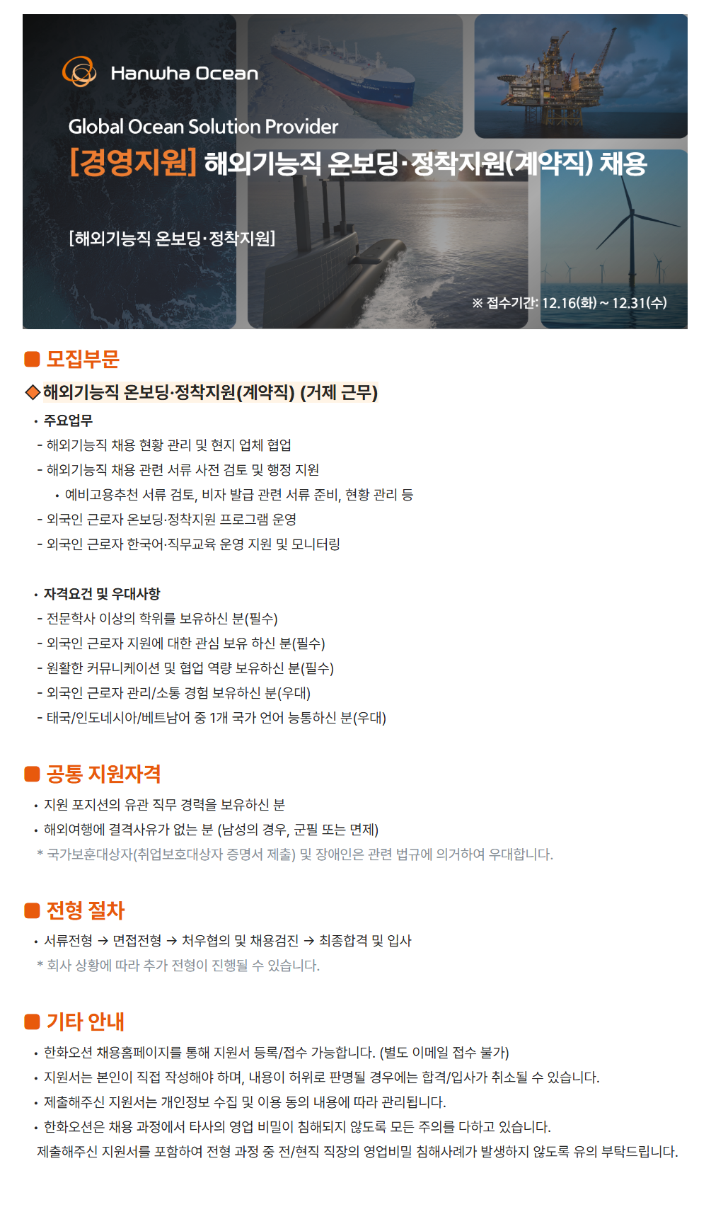 - ÇØ¿Ü±â´ÉÁ÷ ä¿ë ÇöȲ °ü¸® ¹× ÇöÁö ¾÷ü Çù¾÷