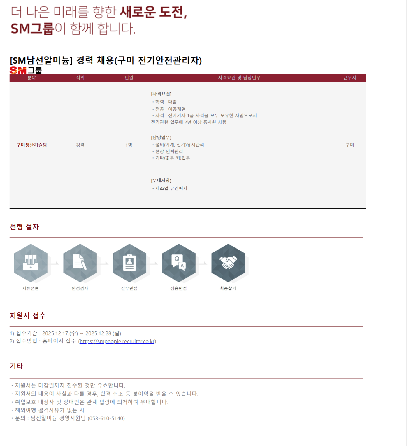 [³²¼±¾Ë¹Ì´½]±¸¹Ì»ý»ê±â¼úÆÀ °æ·Â»ç¿ø ¸ðÁý(±¸¹Ì°øÀå Àü±â¾ÈÀü°ü¸®ÀÚ)
