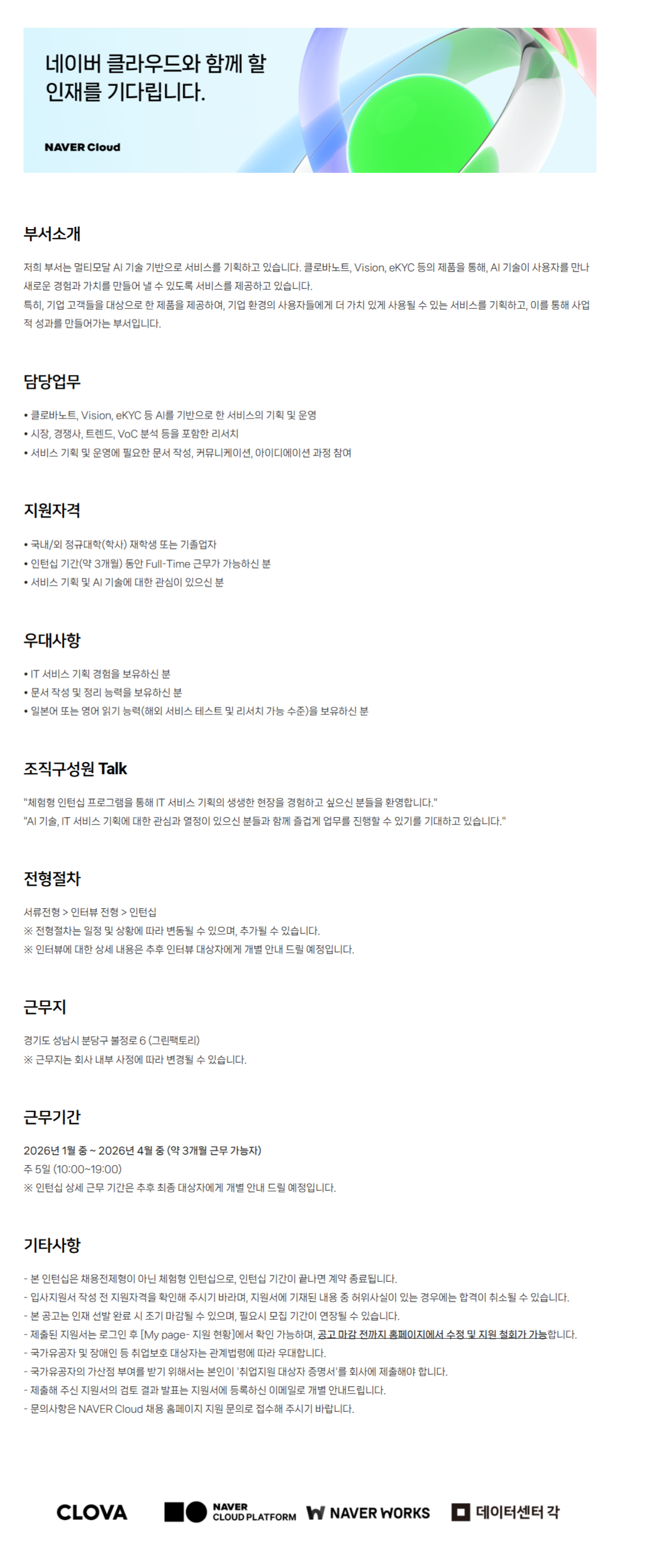 [NAVER Cloud] AI ±â¼ú ±â¹Ý ¼ºñ½º ±âȹ (üÇèÇü ÀÎÅÏ)