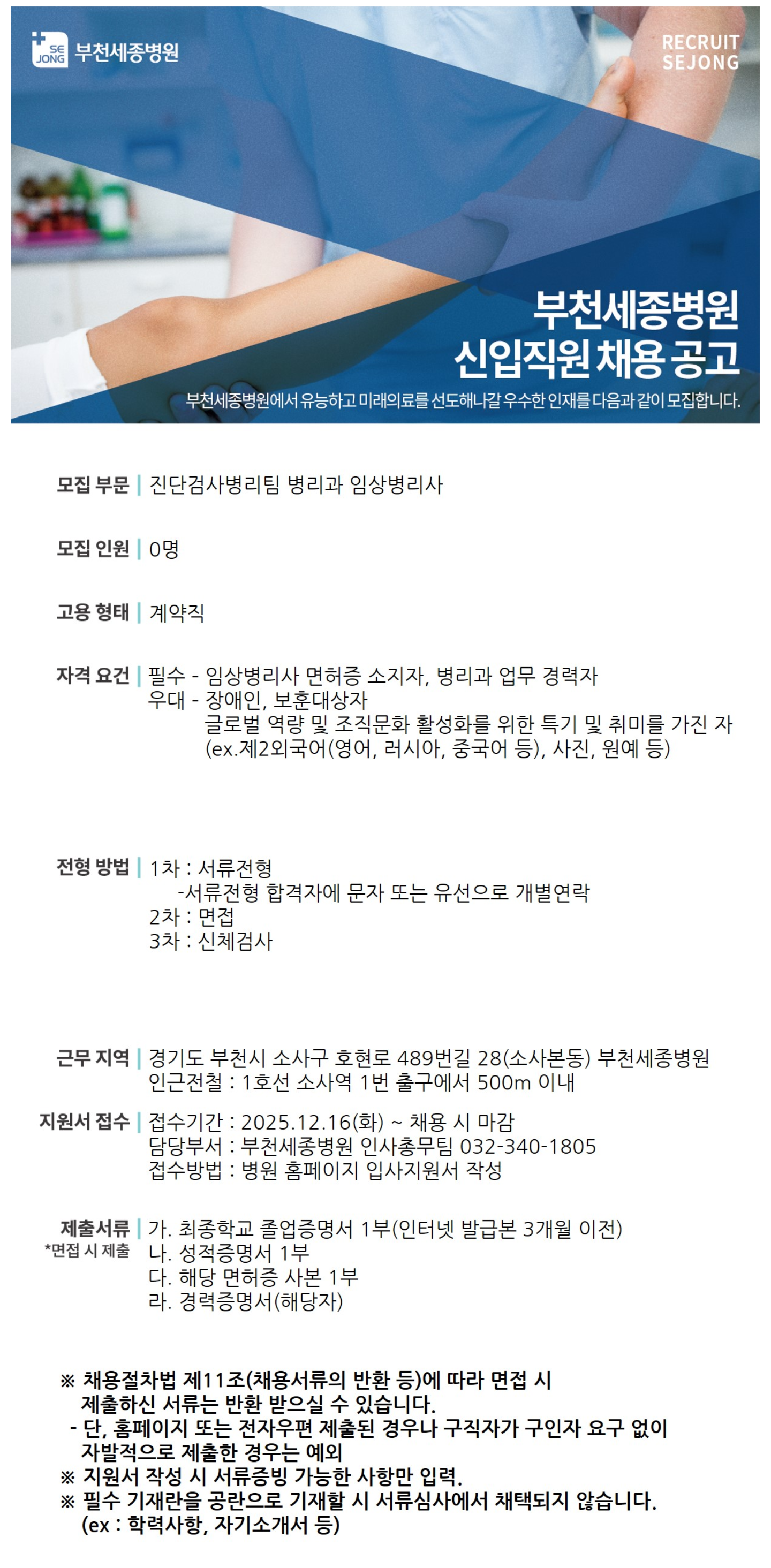 [ºÎõ¼¼Á¾º´¿ø] Áø´Ü°Ë»çº´¸®ÆÀ º´¸®°ú ÀÓ»óº´¸®»ç ä¿ë°ø°í