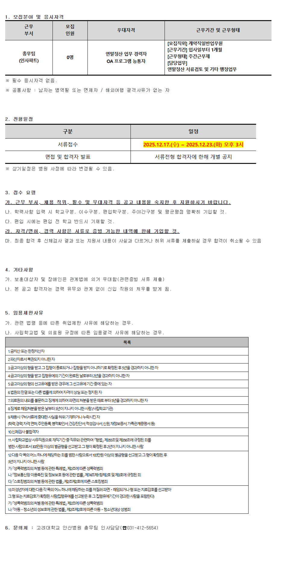 [¾È»êº´¿ø25-199] Ãѹ«ÆÀ(ÀλçÆÄÆ®) °è¾àÁ÷ÀϹݾ÷¹«¿ø ¸ðÁý