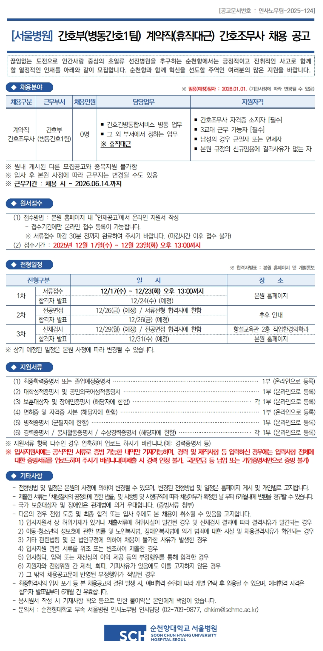 °£È£ºÎ(º´µ¿°£È£1ÆÀ) °è¾àÁ÷(ÈÞÁ÷´ë±Ù) °£È£Á¶¹«»ç ä¿ë °ø°í
