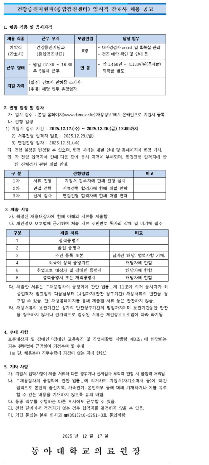 °Ç°ÁõÁøÁö¿ø°ú(Á¾ÇÕ°ËÁø¼¾ÅÍ) ÀÓ½ÃÁ÷ °£È£»ç ä¿ë °ø°í