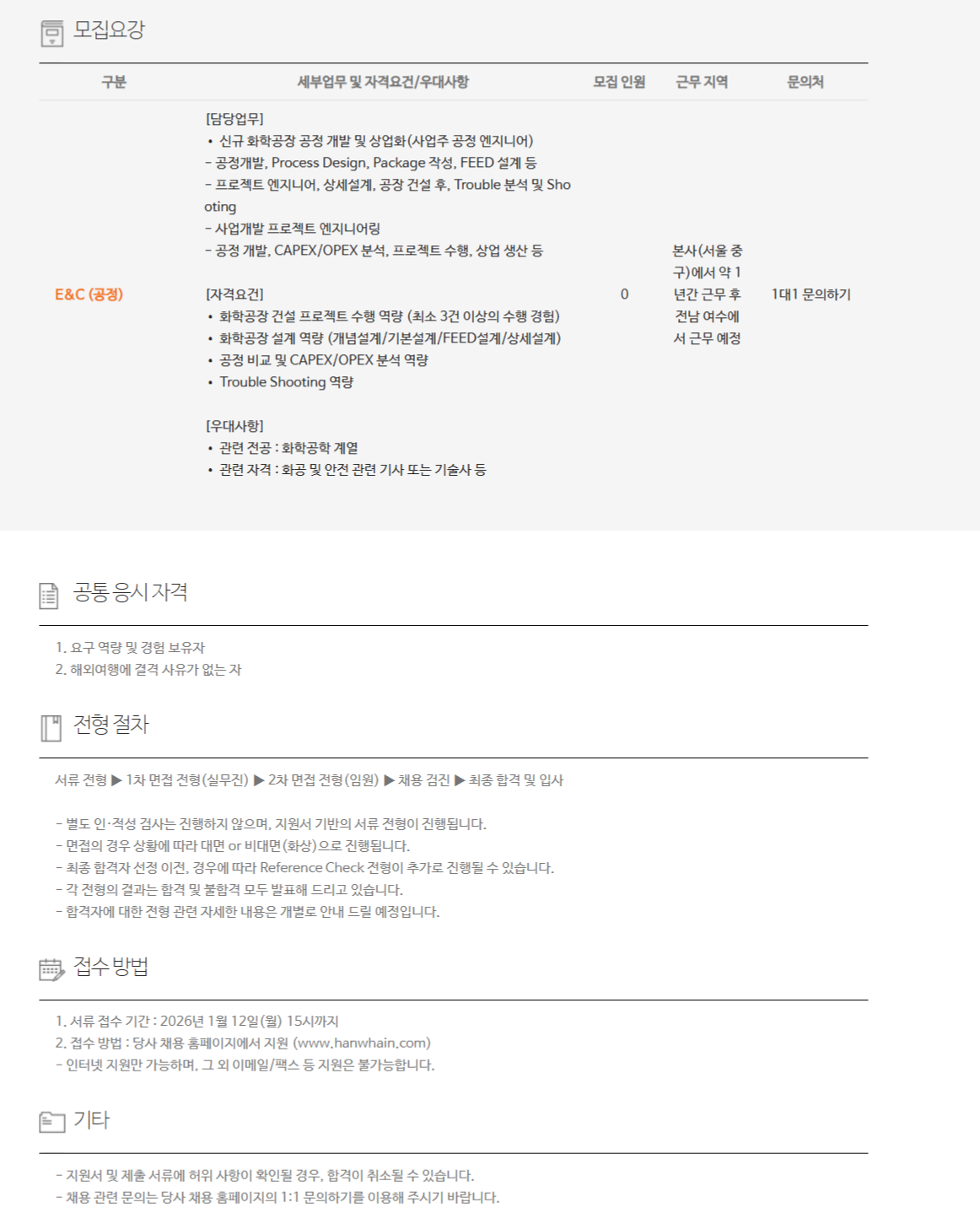 (ÁÖ)ÇÑÈ ±Û·Î¹úºÎ¹® E&C(°øÁ¤) °æ·Â»ç¿ø ä¿ë