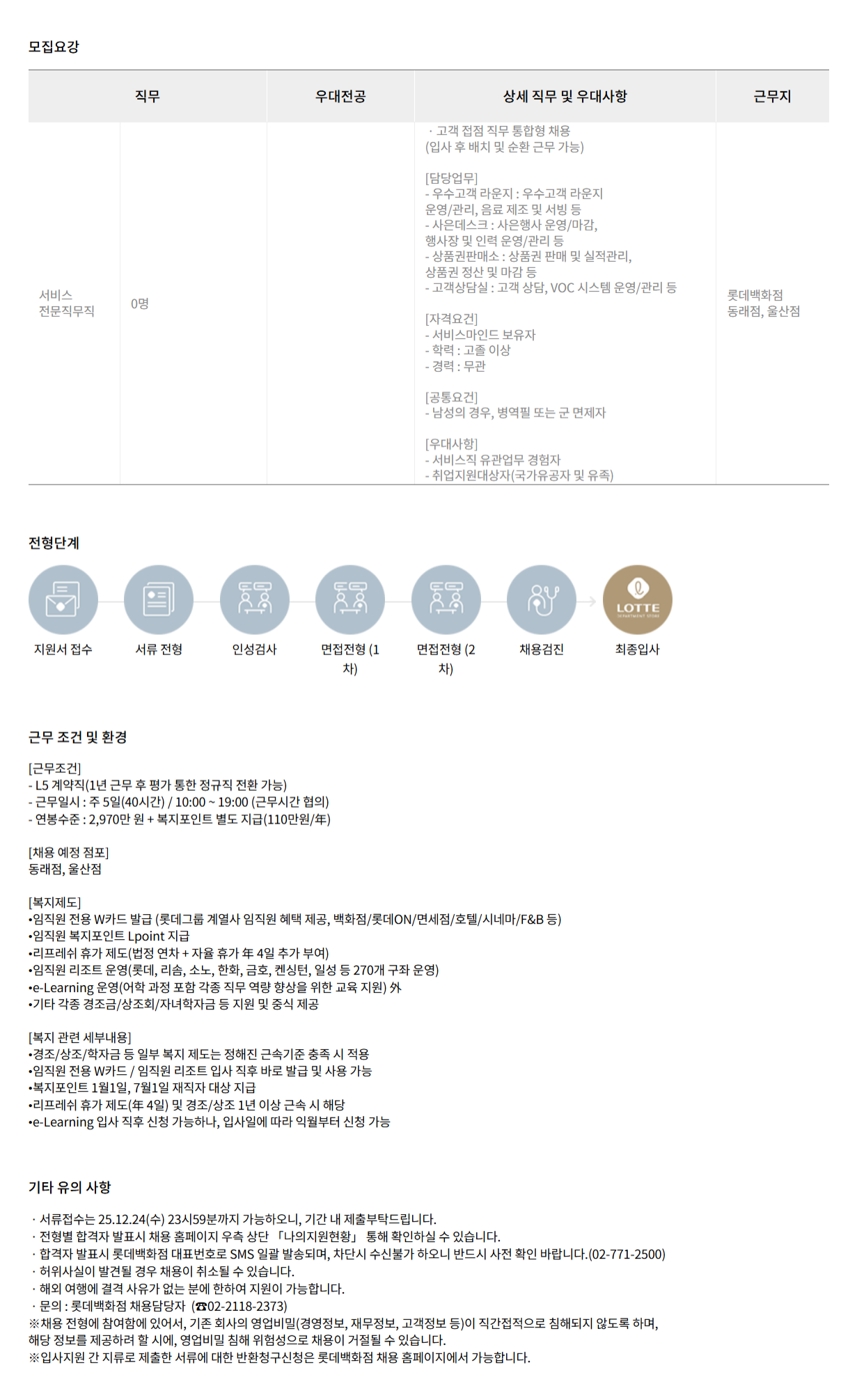 [·Ôµ¥¹éÈÁ¡] ¼ºñ½ºÀü¹®Á÷¹«Á÷ 12¿ù ä¿ë (ÀüȯÇü)