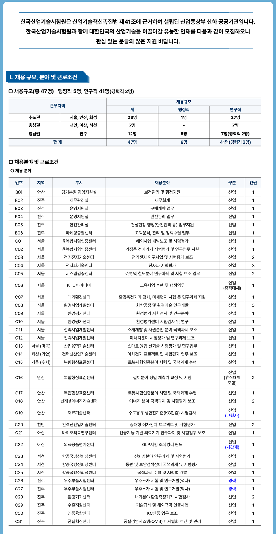 ¡à ä¿ë±Ô¸ð(ÃÑ 47¸í) : ÇàÁ¤Á÷ 5¸í, ¿¬±¸Á÷ 41¸í(°æ·ÂÁ÷2¸í)