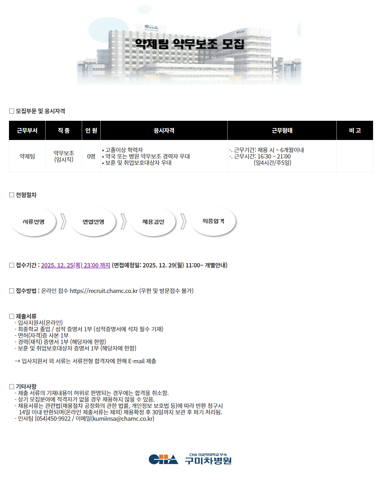 [±¸¹ÌÂ÷º´¿ø] ¾àÁ¦ÆÀ ¾à¹«º¸Á¶ ¸ðÁý(ÀÓ½ÃÁ÷)