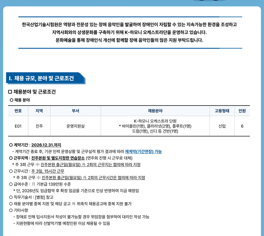 Çѱ¹»ê¾÷±â¼ú½ÃÇè¿øÀº ¿ª·®°ú Àü¹®¼º ÀÖ´Â Àå¾Ö À½¾ÇÀÎÀ» ¹ß±¼ÇÏ¿© Àå¾ÖÀÎÀÌ ÀÚ¸³ÇÒ ¼ö ÀÖ´Â Áö¼Ó°¡´ÉÇÑ È¯°æÀ» Á¶¼ºÇϰí