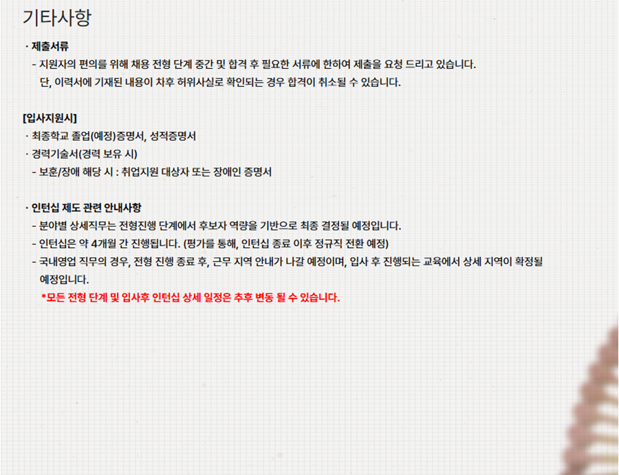 *¸ðµç ÀüÇü ´Ü°è ¹× ÀÔ»çÈÄ ÀÎÅÏ½Ê »ó¼¼ ÀÏÁ¤Àº ÃßÈÄ º¯µ¿ µÉ¼ö ÀÖ½À´Ï´Ù.