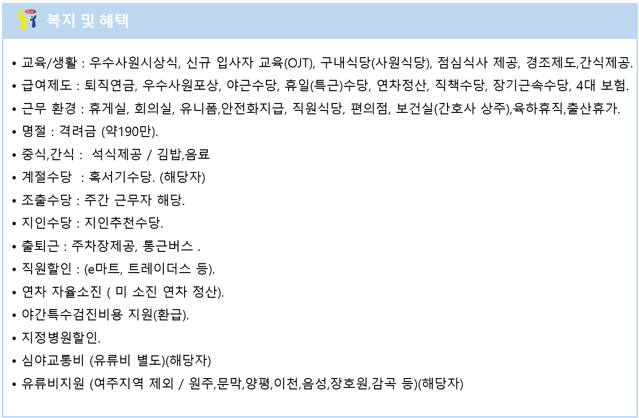 • ±Ù¹«¿äÀÏ/½Ã°£: ÁÖ5ÀÏ ( ÁÖÁß1ȸ, ÀÏ¿äÀÏ ÈÞ¹«) / 07:00 ~ 16:00.