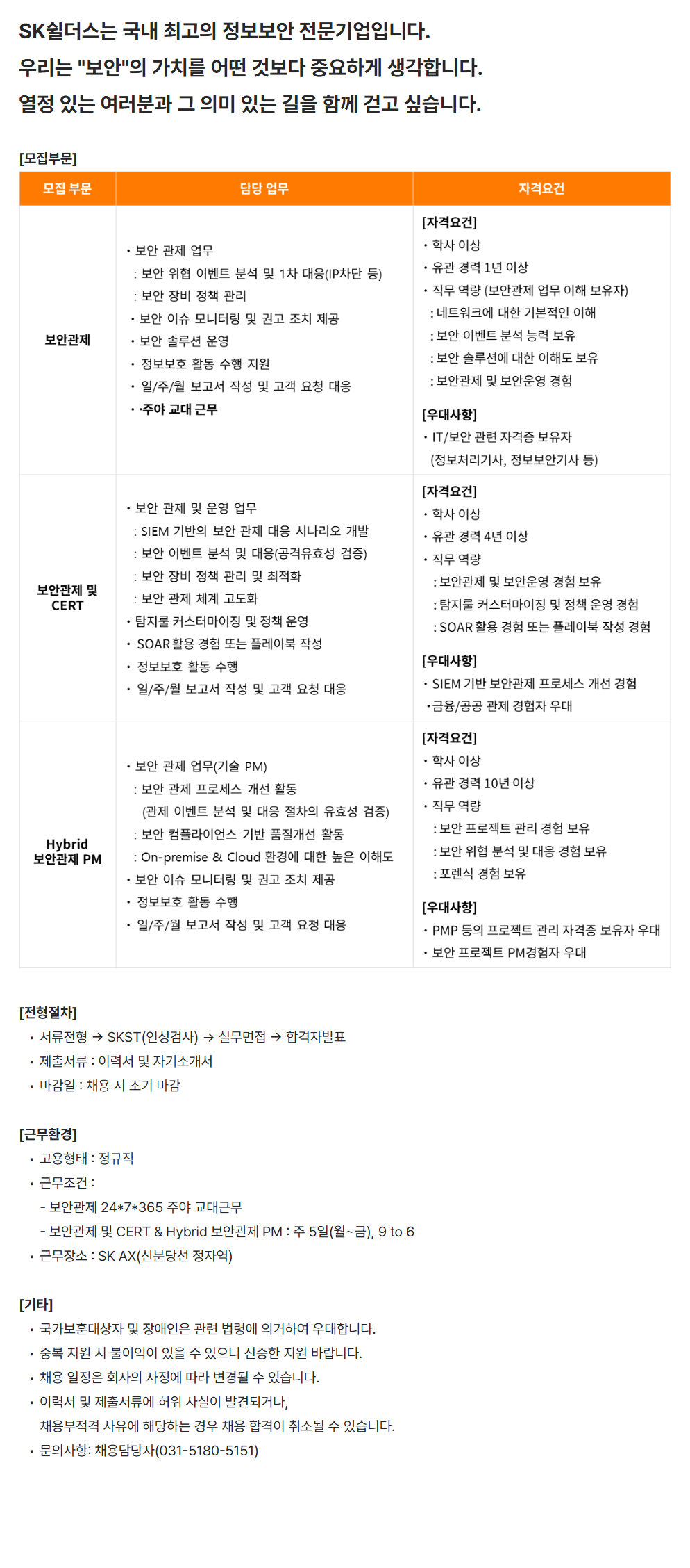 º¸¾È°üÁ¦ & º¸¾È°üÁ¦ ¹× CERT & Hybridº¸¾È°üÁ¦ PM °æ·ÂÁ÷ ä¿ë(SK AX ±Ù¹«)