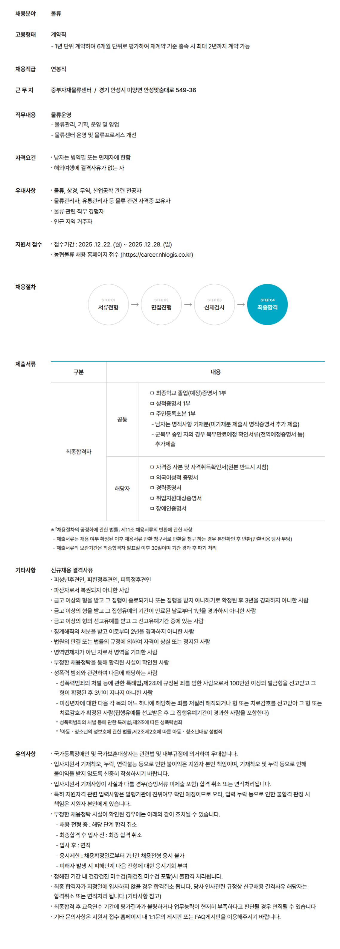 ³óÇù¹°·ù ä¿ë ȨÆäÀÌÁö Á¢¼ö (https://career.nhlogis.co.kr)