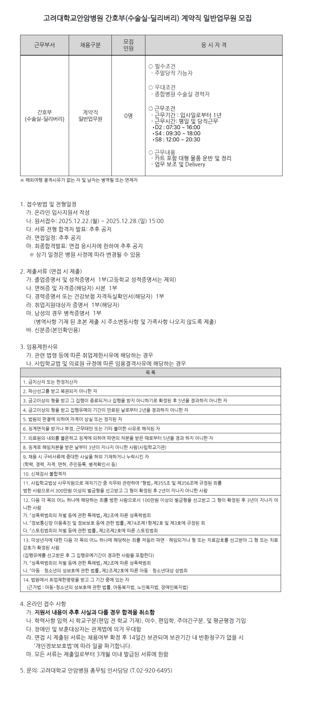 [¾È¾Ïº´¿ø 25-237]°£È£ºÎ(¼ö¼ú½Ç-µô¸®¹ö¸®) °è¾àÁ÷ ÀϹݾ÷¹«¿ø ¸ðÁý