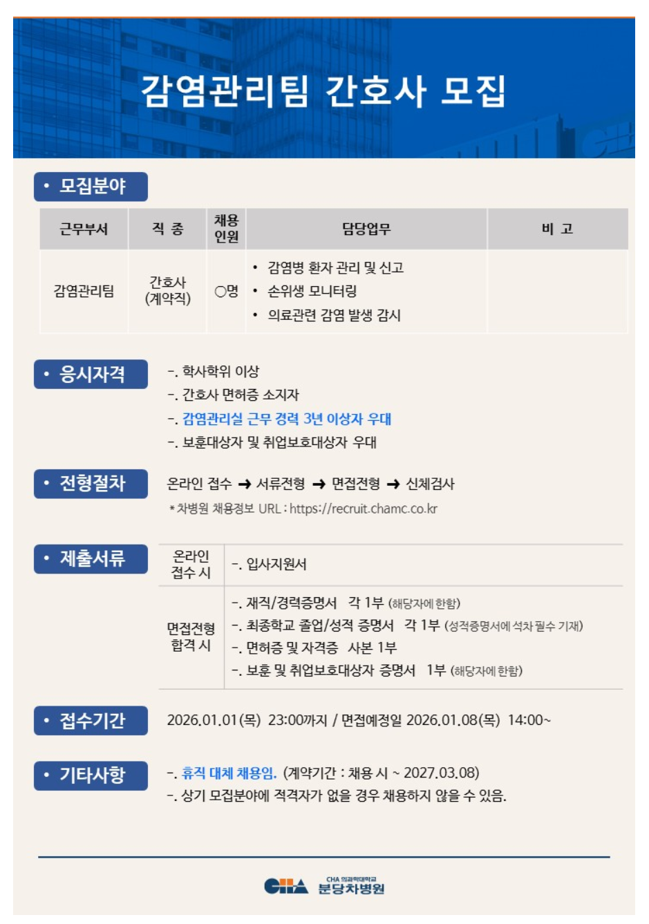 [ºÐ´çÂ÷º´¿ø] °¨¿°°ü¸®ÆÀ °£È£»ç ¸ðÁý