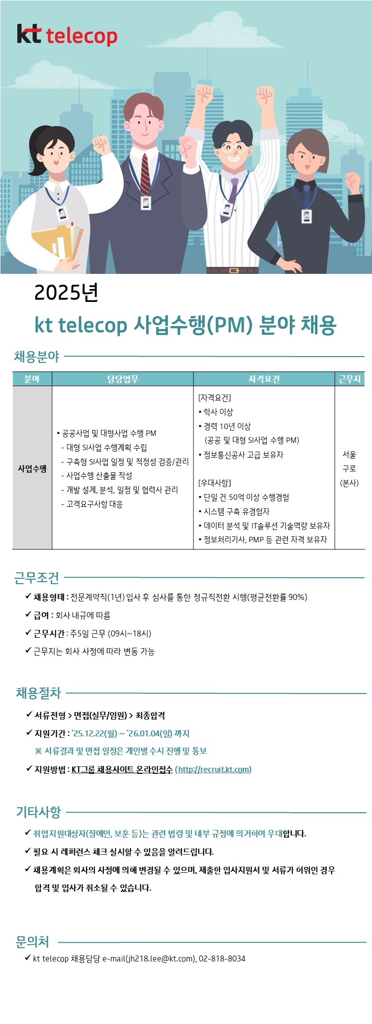 [kt telecop] 2025³â »ç¾÷¼öÇà(PM) ºÐ¾ß ä¿ë