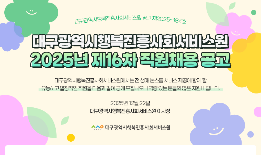 | ¼Ò¼Ó½Ã¼³ | ÀüÀÏÁ¦ û¼Ò³âµ¿¹ÝÀÚ | 1 | û¼Ò³â »ó´ãº¹Áö¼¾ÅÍ | °ø¹«Á÷ | ¼ö½À±â°£(3°³¿ù) Æò°¡¸¦ ÅëÇØ ÀÓ¿ë¿©ºÎ °áÁ¤ ¡Ø2026.2.1.ÀÓ¿ë |