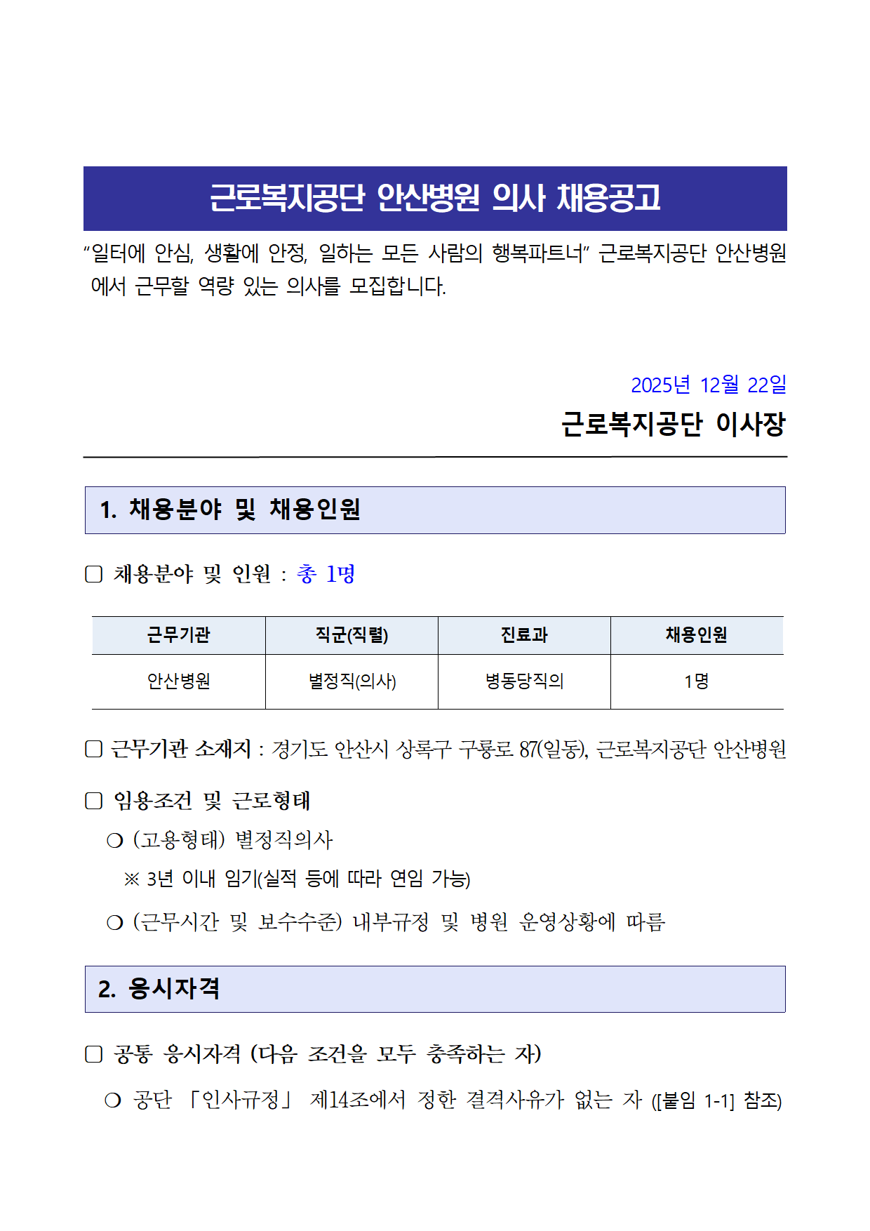 [¾È»êº´¿ø] º°Á¤Á÷(º´µ¿´çÁ÷ÀÇ) ä¿ë(7Â÷)