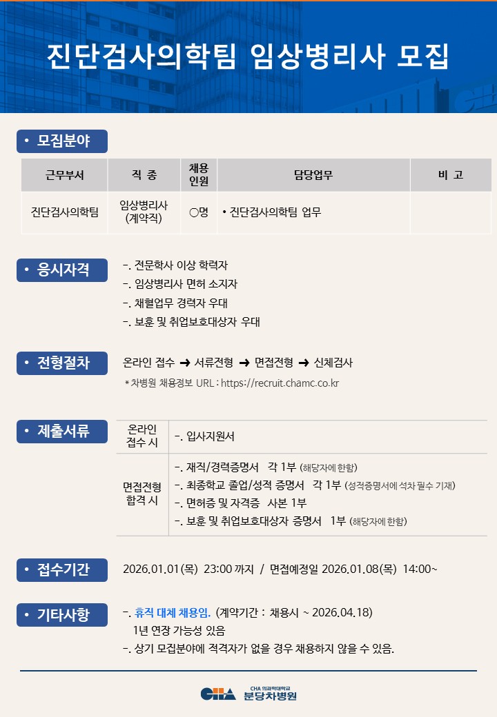 [ºÐ´çÂ÷º´¿ø] Áø´Ü°Ë»çÀÇÇÐÆÀ ÀÓ»óº´¸®»ç ¸ðÁý