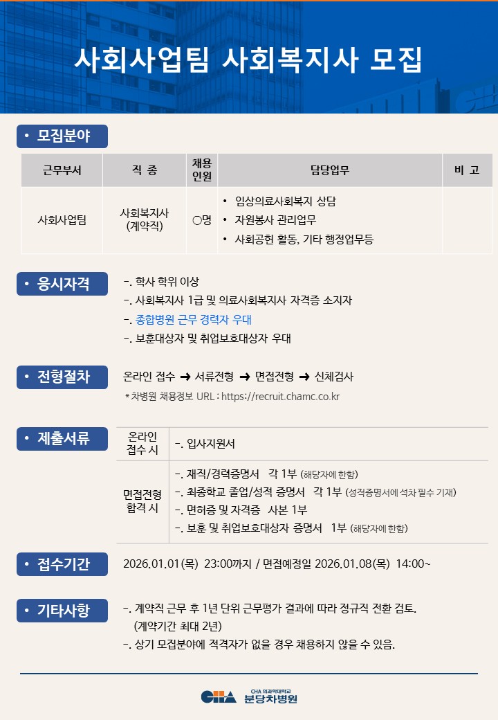 [ºÐ´çÂ÷º´¿ø] »çȸ»ç¾÷ÆÀ »çȸº¹Áö»ç ¸ðÁý