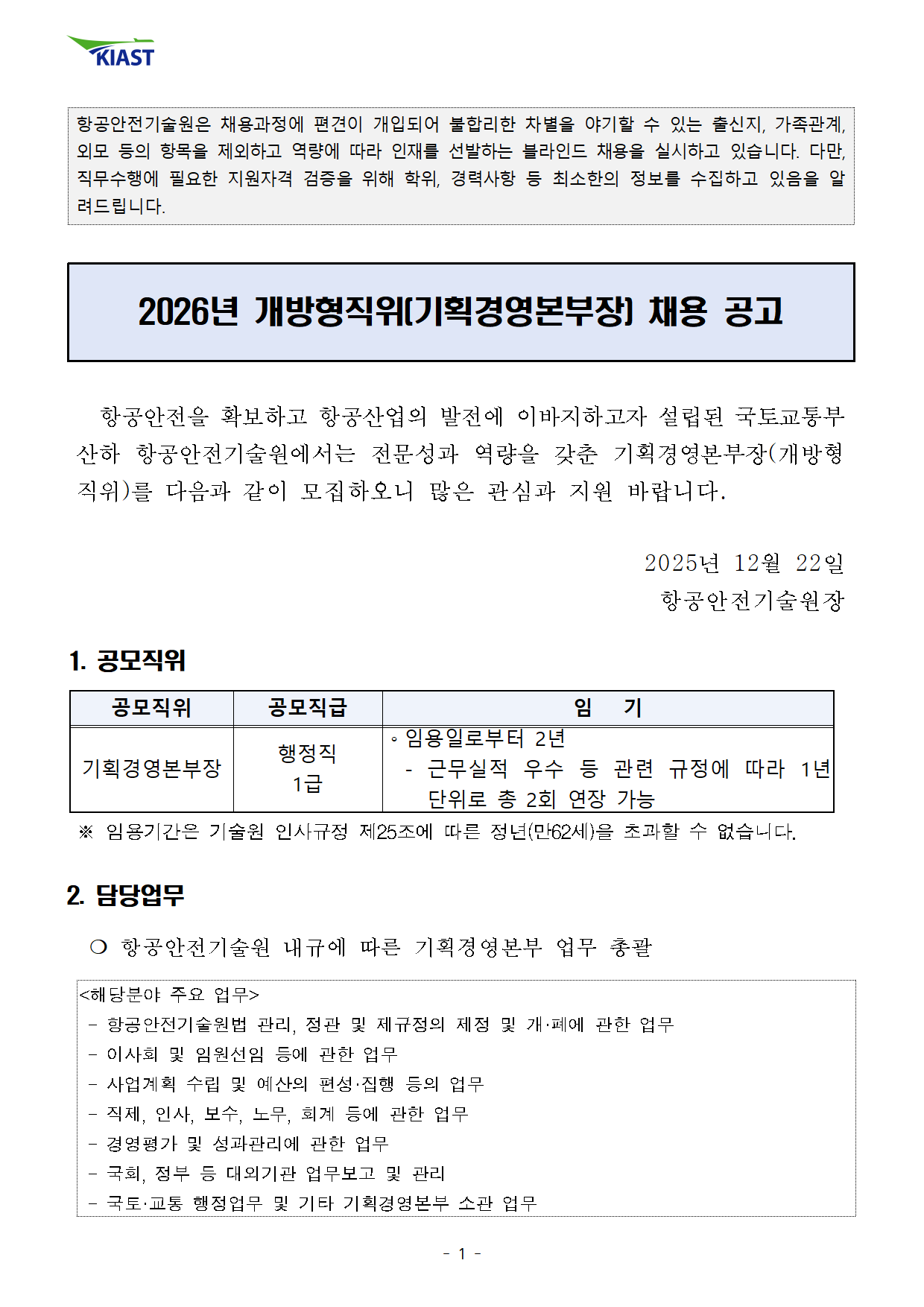 2026³â °³¹æÇüÁ÷À§(±âȹ°æ¿µº»ºÎÀå) ä¿ë °ø°í