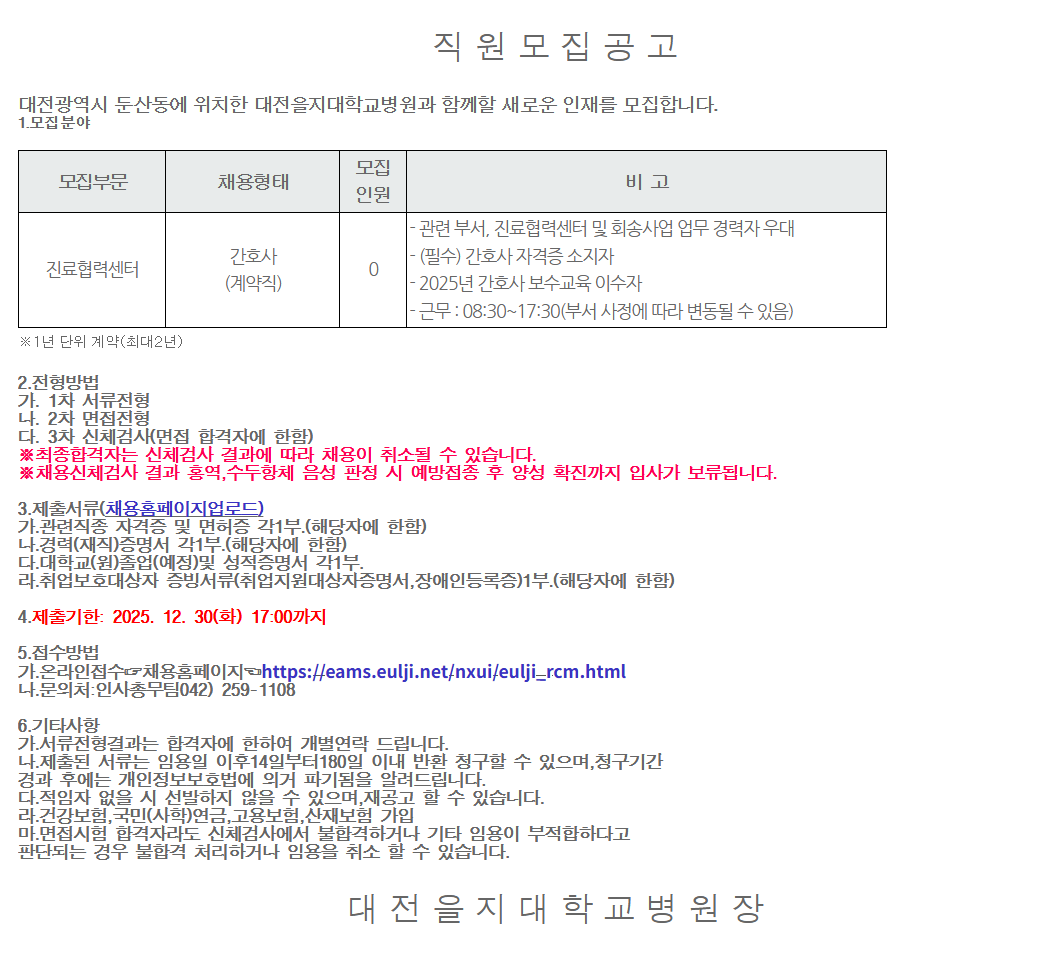 ´ëÀü±¤¿ª½Ã µÐ»êµ¿¿¡ À§Ä¡ÇÑ ´ëÀüÀ»Áö´ëÇб³º´¿ø°ú ÇÔ²²ÇÒ »õ·Î¿î ÀÎÀ縦 ¸ðÁýÇÕ´Ï´Ù.