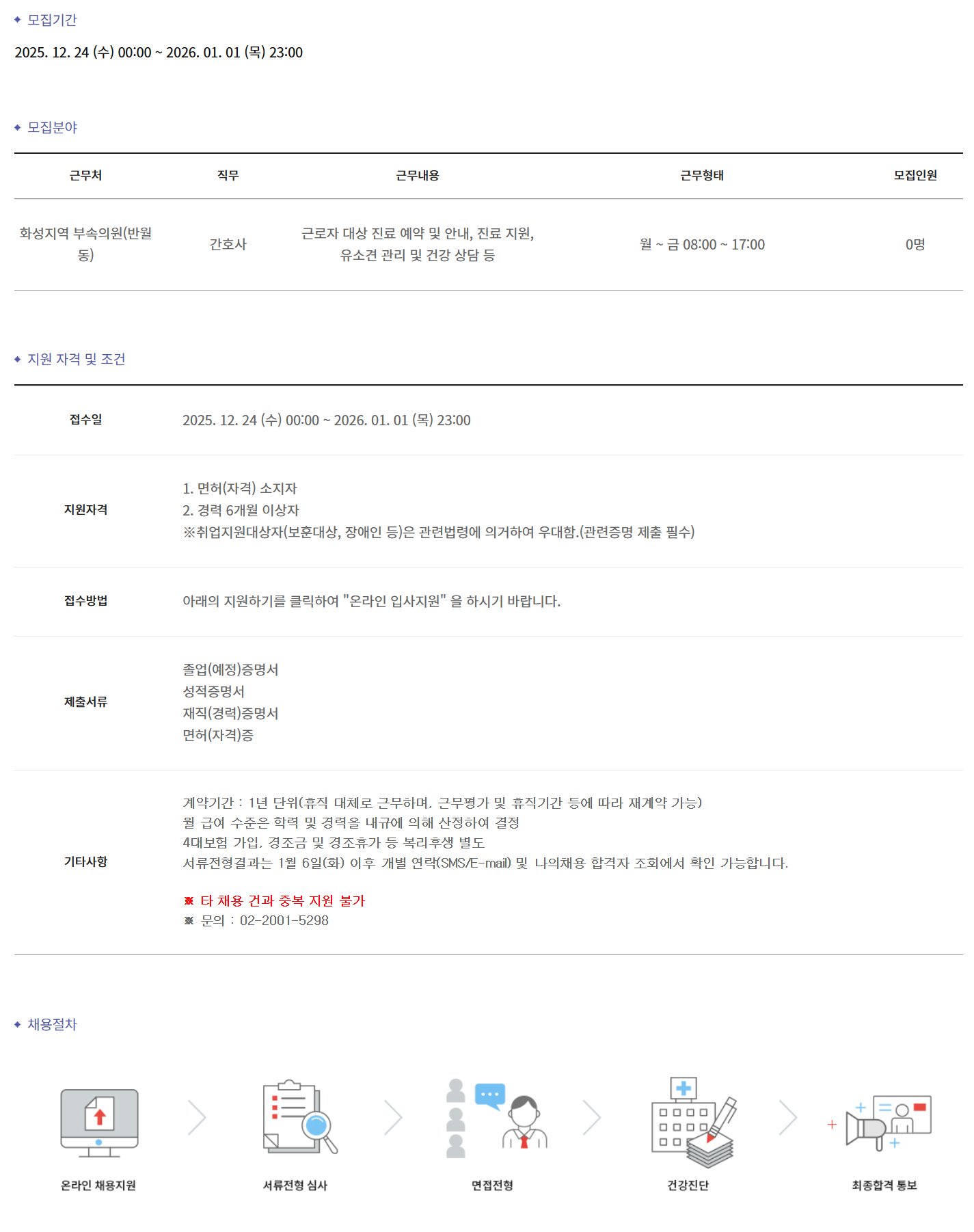 ±Ù¹«Ã³ Á÷¹« ±Ù¹«³»¿ë ±Ù¹«ÇüÅ ¸ðÁýÀοø ȼºÁö¿ª ºÎ¼ÓÀÇ¿ø(¹Ý¿ùµ¿) °£È£»ç ±Ù·ÎÀÚ ´ë»ó Áø·á ¿¹¾à ¹× ¾È³», Áø·á Áö¿ø, À¯¼Ò°ß °ü¸® ¹× °Ç° »ó´ã µî ¿ù ~ ±Ý 08:00 ~ 17:00 0¸í